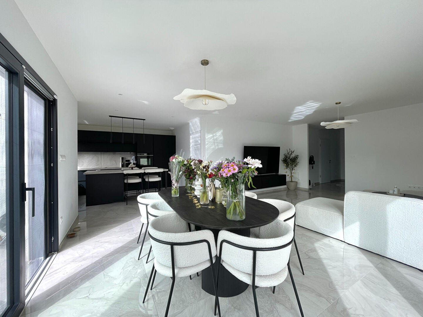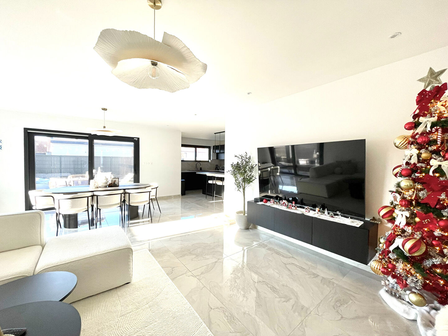 Maison contemporaine composée d'un bel espace salon-séjour avec cuisine ouverte équipée, 3 chambres, dont une suite parentale au RDC, une salle de bains, une buan...