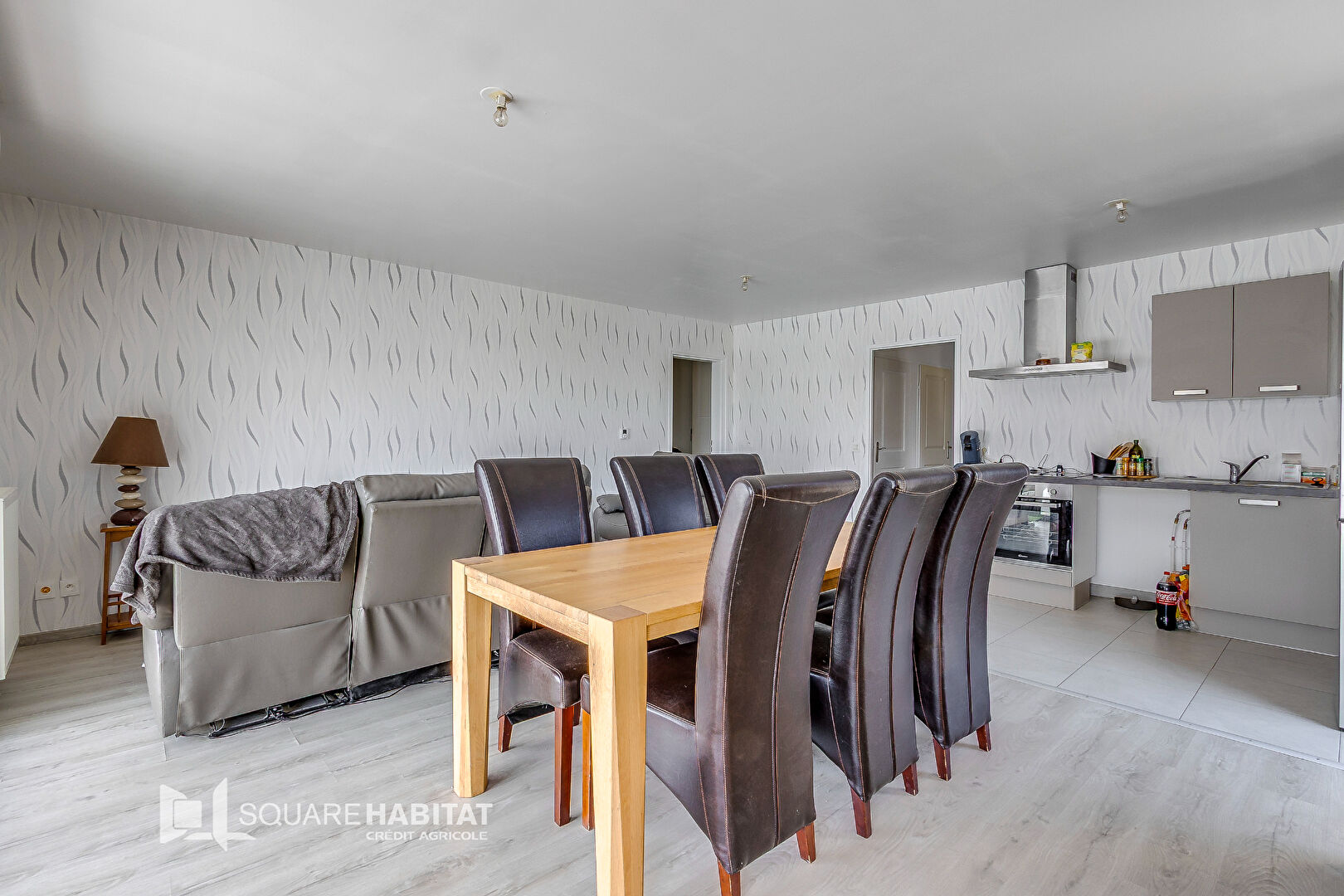 Une lumineuse pièce de vie avec cuisine ouve...