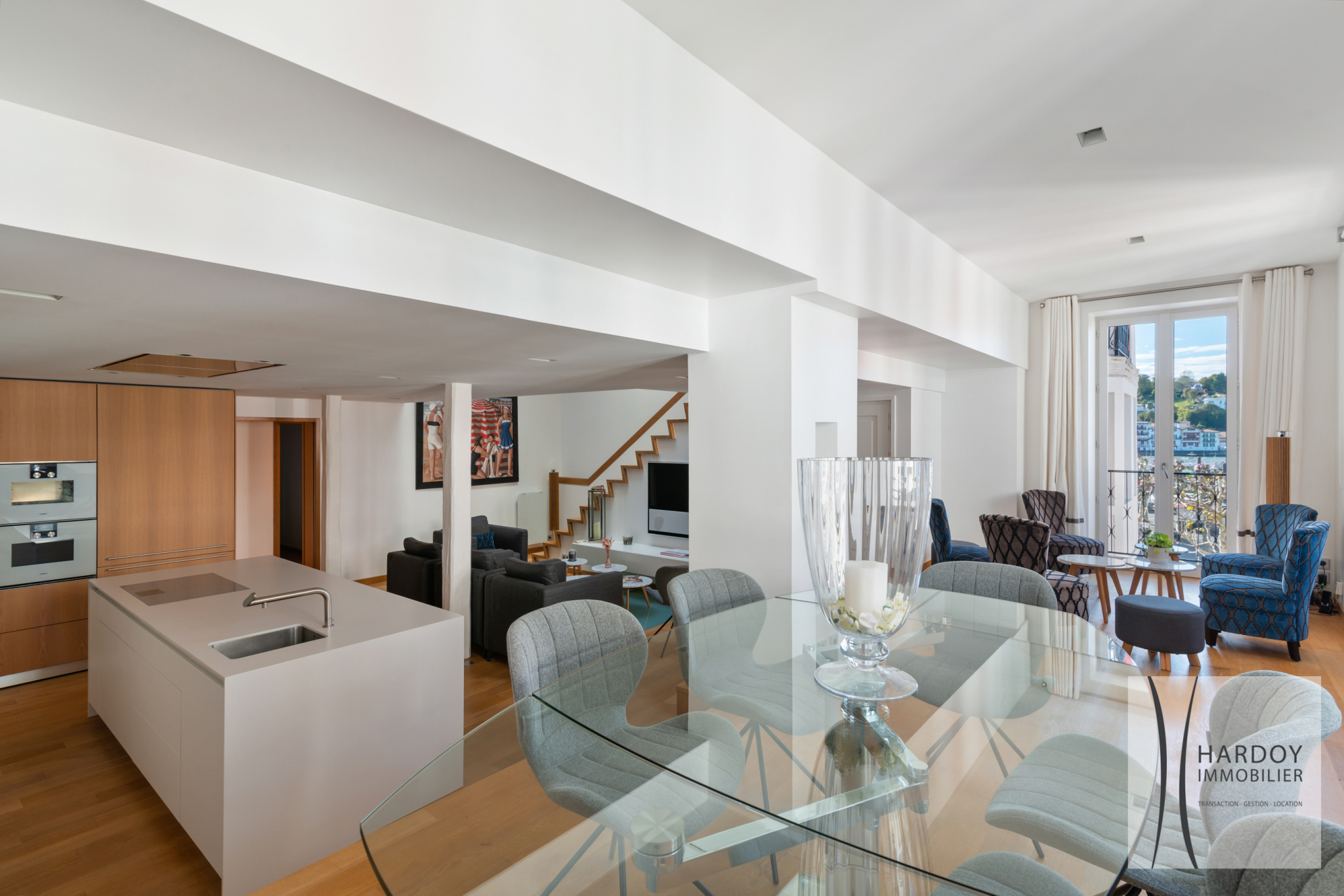 Au coeur du centre historique, magnifique appartement en duplex de 133.11 m2 entièrement rénové avec des prestations de grande qualité. Aux derniers étages d'une belle bâtisse basque, cet appartement réunit le charme de l'ancien et le confort de la m...