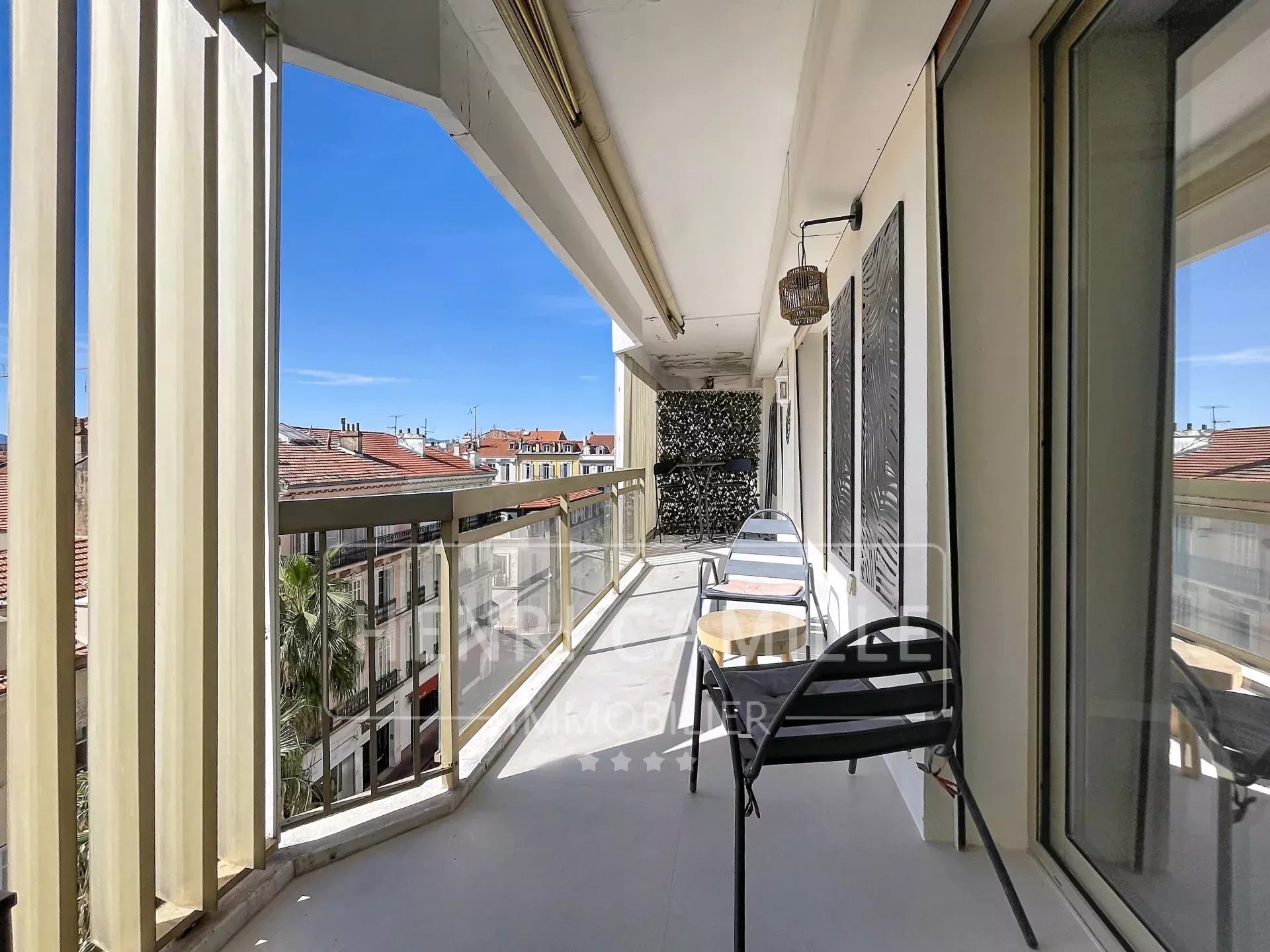 En dernier étage d'une résidence sécurisée située à 5 mn à pied des plages de la Croisette et de la Rue d'Antibes, 3/4 pièces de 87 m² LC (120 m² habitables) composé d'une entrée, 2 chambres, 1 salle de douche, 1 buanderie, un double séjour, un ...