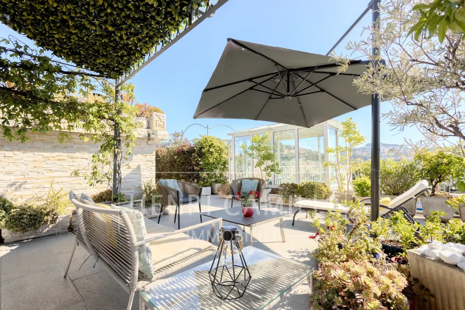 Au dernier étage d'une belle résidence récente au calme total, à proximité de la rue d'Antibes à pied, ce 5 pièces est composé de plain pied d'un salon/salle à manger ouvrant sur 15m² de terrasse plein sud avec très belle vue dégagée, la cuisine...