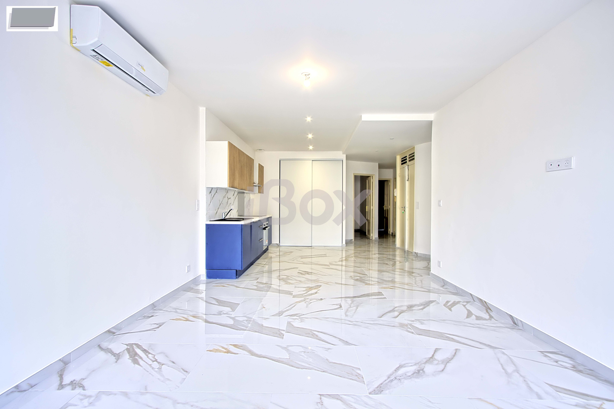 Il se compose d'une entrée deservant la cuisisne aménagée/equipée, un salon/séjour donnant acces à une grande terrasse.