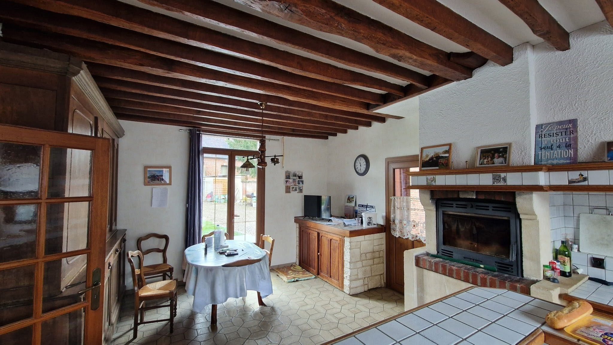 - au rez-de-chaussée : une entrée, un WC, une cuisine aménagée et équipée, une salle à manger, un salon avec cheminée insert, une véranda.