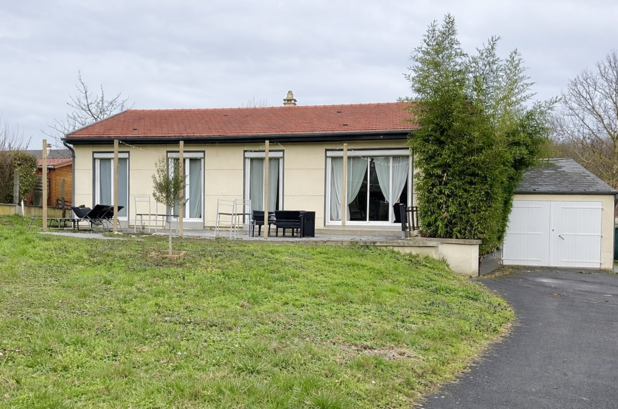 - Une maison en briques élevé sur sous-sol total, de 89m2 comprenant : au rez de chaussée : une entrée, une cuisine aménagée, un séjour, une chambre, une salle d...