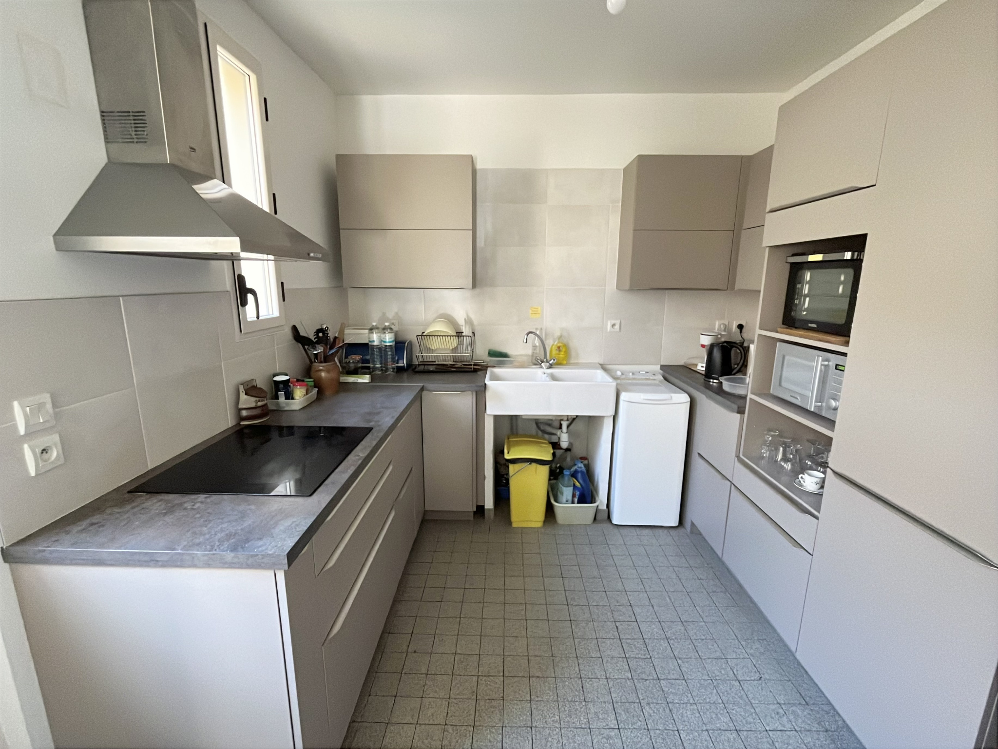 - au rez-de-chaussée : une entrée, une buanderie, un séjour avec cuisine ouverte aménagée, un WC.