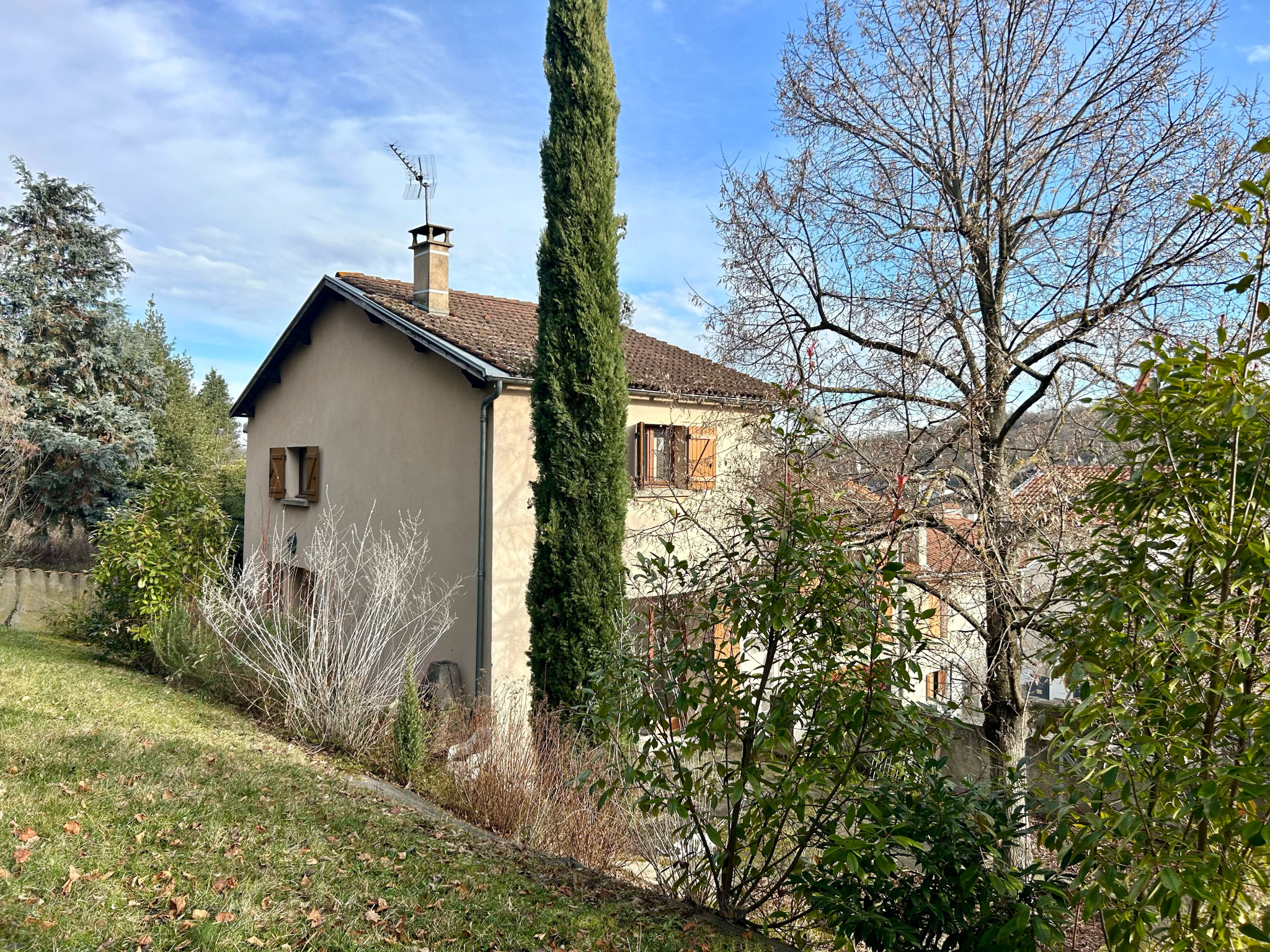 Belle maison de ville sur 3 niveaux avec de nombreuses annexes et un terrain de 1038 m2. Elle est composée d'une cuisine aménagée donnant sur un salon/séjour lumineux avec accès direct sur une terrasse en pierre de Volvic et au jardin, quatre chambres, un...