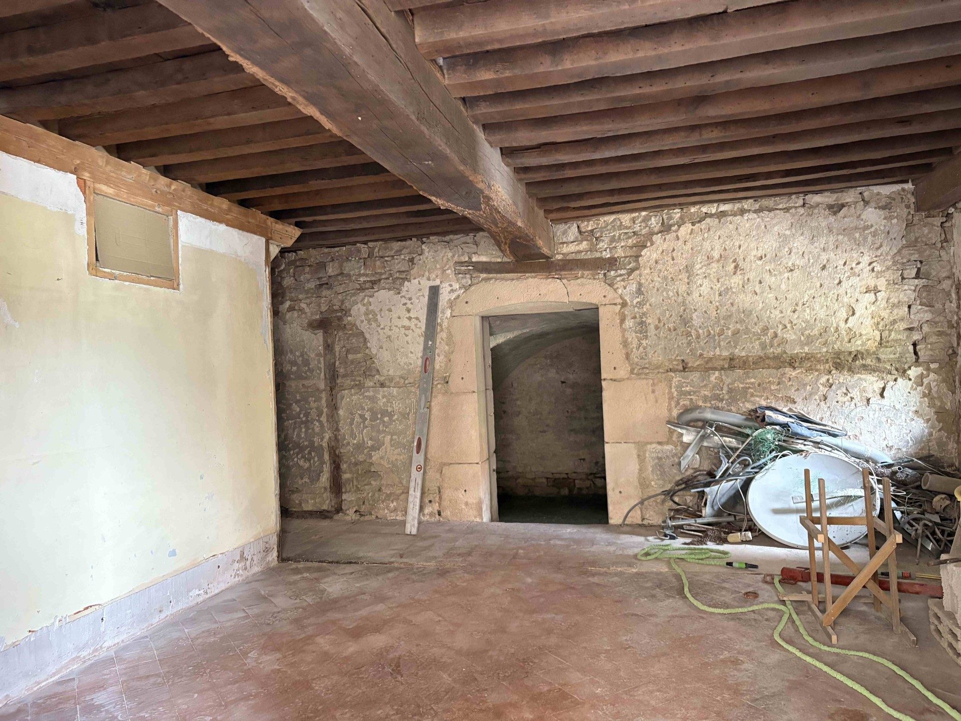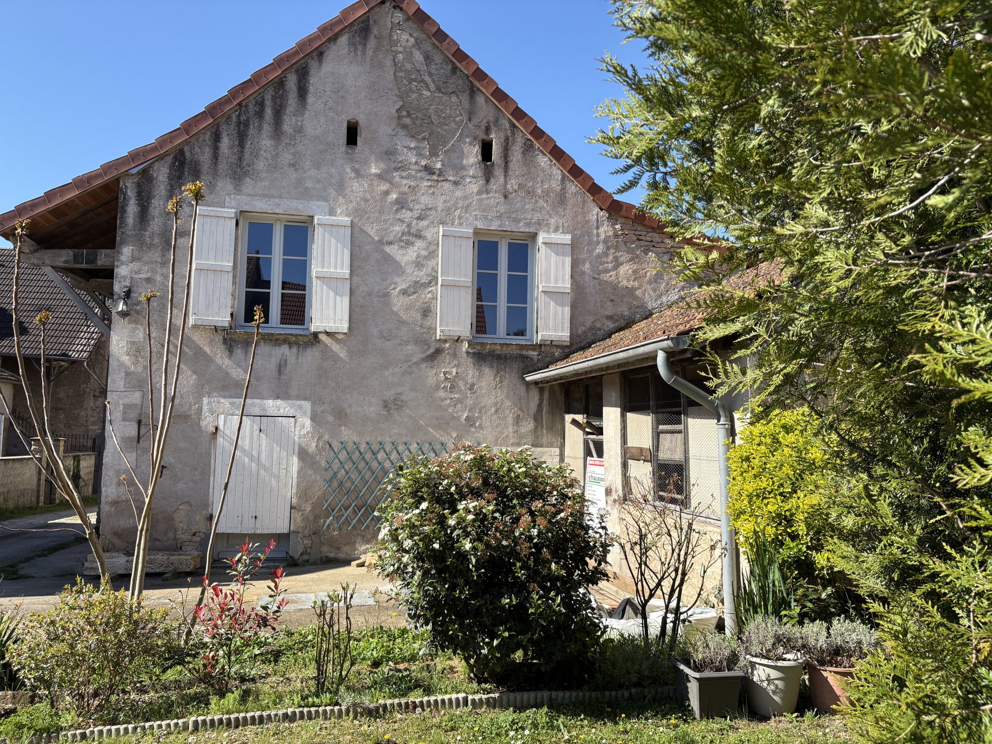 A VENDRE, LAIVES au coeur du village, maison en cours de rénovation avec terrasse de 30 m² + terrain séparé. Toiture neuve avec film de protection (garantie décennale). Elle comprend : au rez-de-chaussée (60 m²), une pièce principale avec accès direct sur terr...