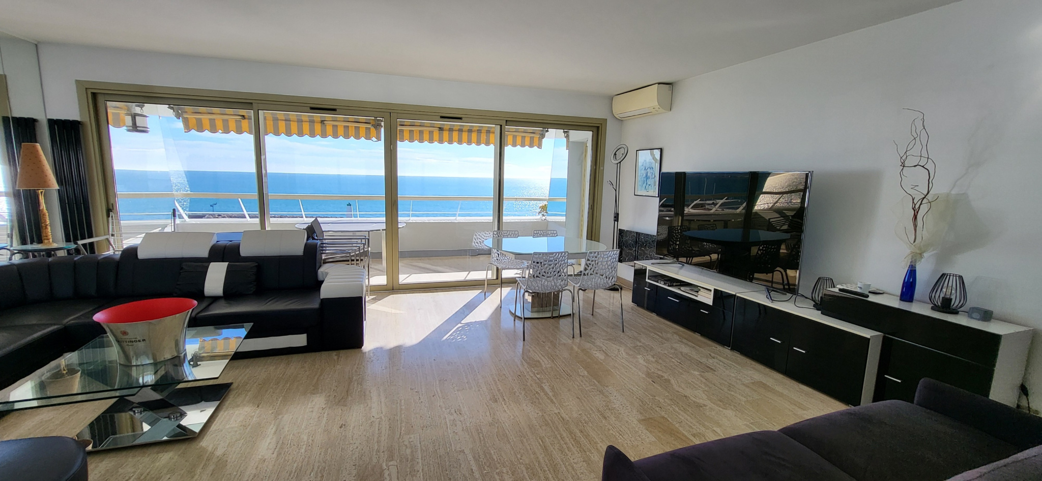 Superbe appartement de 3 pièces de 79 m2 habitables en front de mer à Marina Baie des Anges, une situation unique sur la Côte d'Azur : double séjour, 2 chambres, 1 salle de bain avec baignoire balnéo et WC, 1 salle de douche, 1 WC invités, 1 cuisine équip...