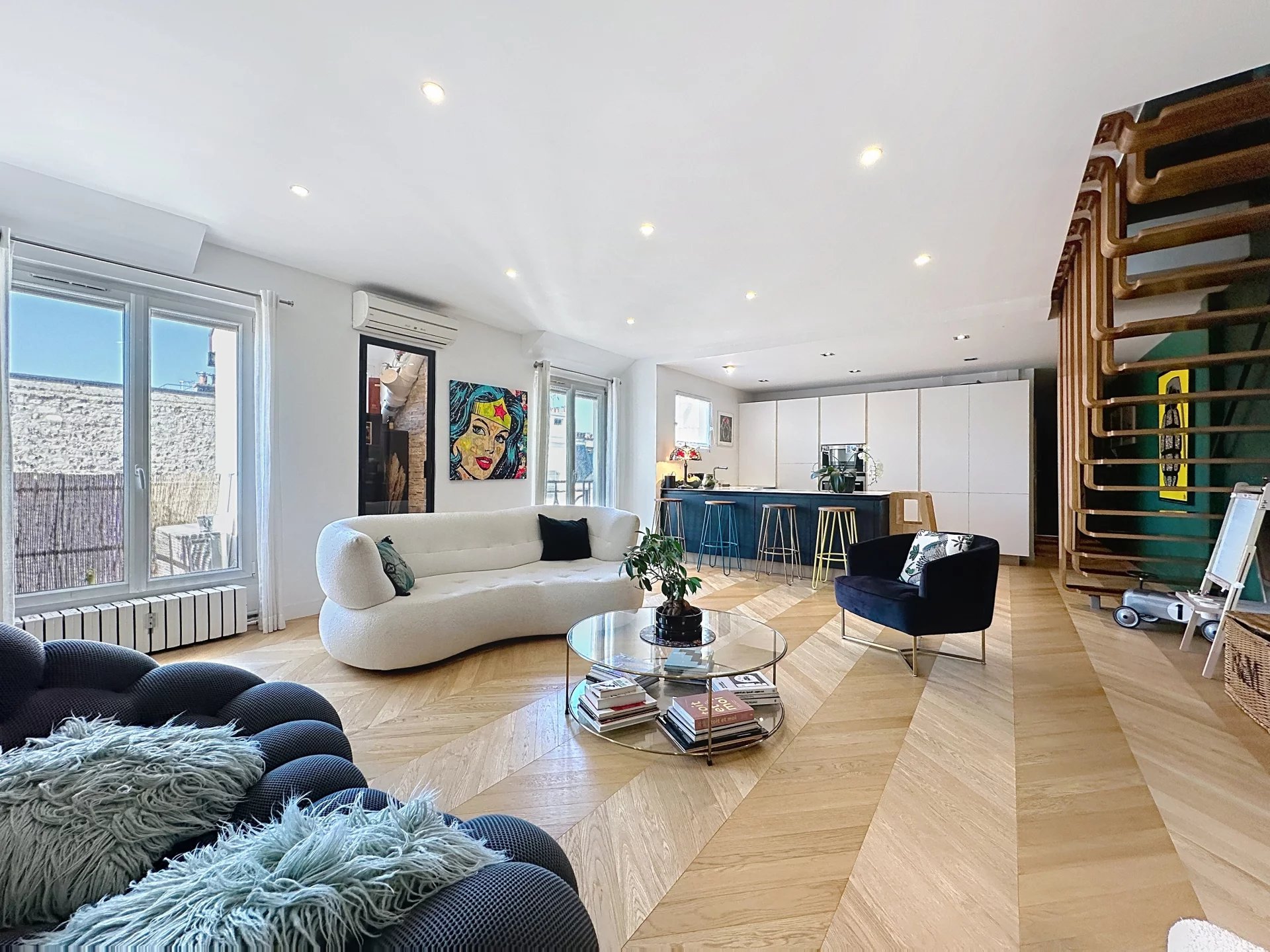 Au 7ème étage avec ascenseur d'un immeuble moderne, magnifique appartement de 107 m² en duplex, comprenant: