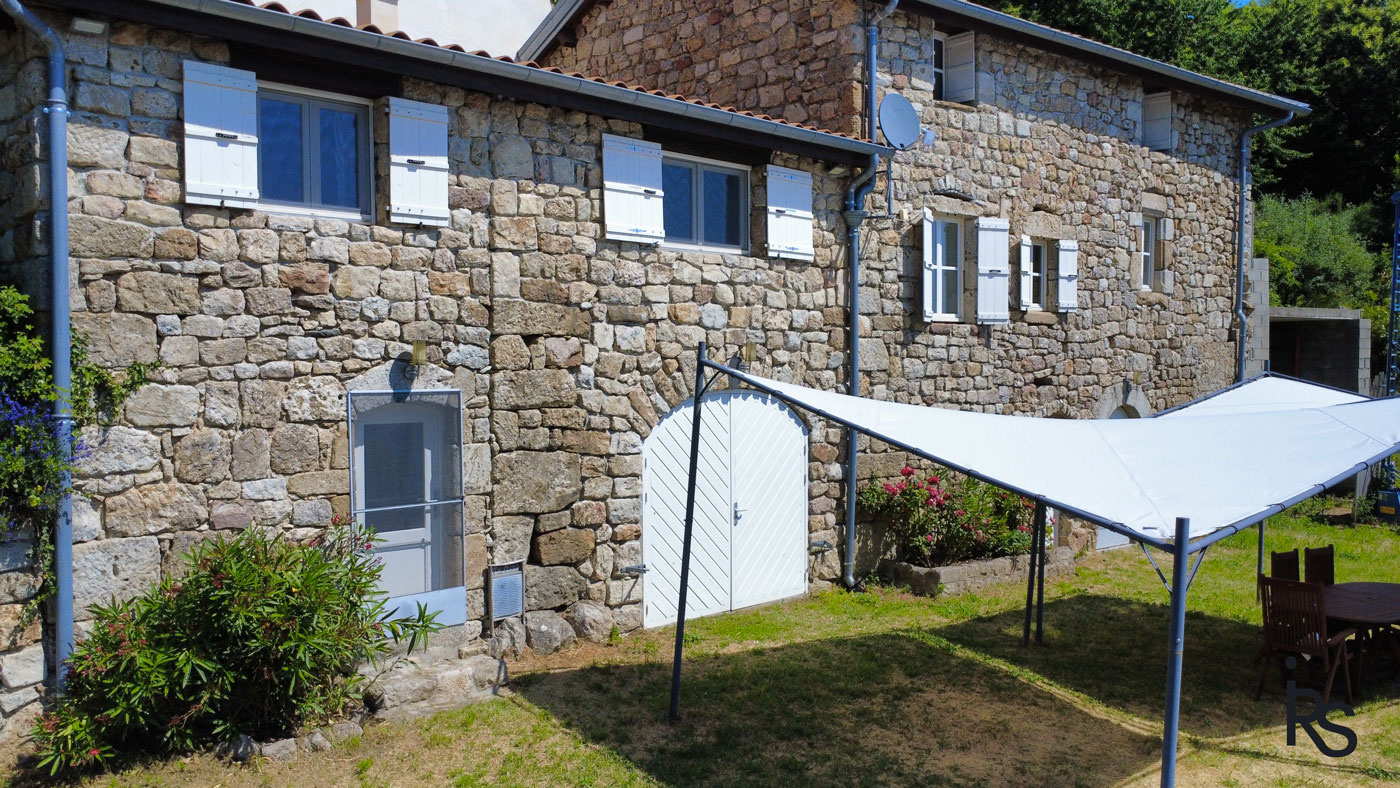 A 10 minutes de Largentière, dans un petit hameau paisible, une spacieuse maison en pierre typique de 187 m2 habitables, 230 m2 de dépendances aménageables, une cour intérieure et un jardin en face de 280 m2. Chauffage central fuel et radiateurs électriques. T...