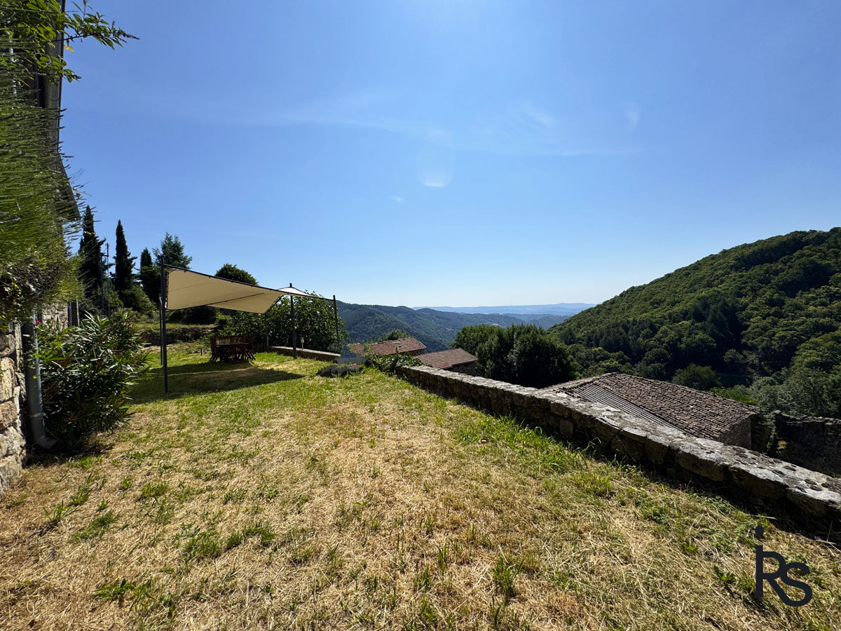 Dans un village établi en hauteur sur les contreforts du Massif du Tanargue, une maison en pierre de 190 m2 habitables, et un terrain plat de 2833 m2 avec une vue panoramique. Cette bâtisse ardéchoise élevée sur caves se compose au premier étage d'une trè...