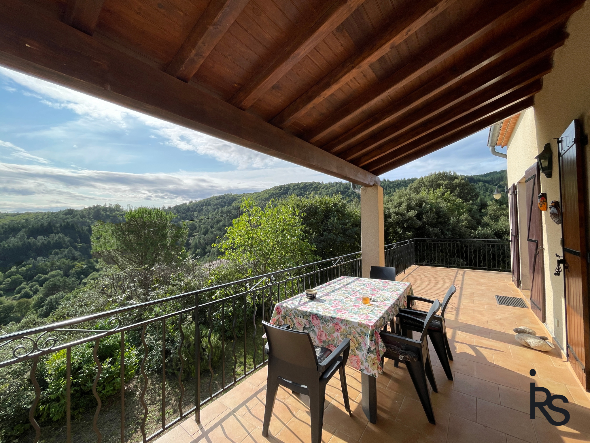 A 15 minutes de LARGENTIERE, une villa de traditionnelle ardéchoise avec une très jolie vue et une grande terrasse longeant 2 façades, 5612 m2 de terrain avec un jardin paysagé, 172 m2 habitables comprenant un appartement au rez-de-chaussée avec un grand séjou...