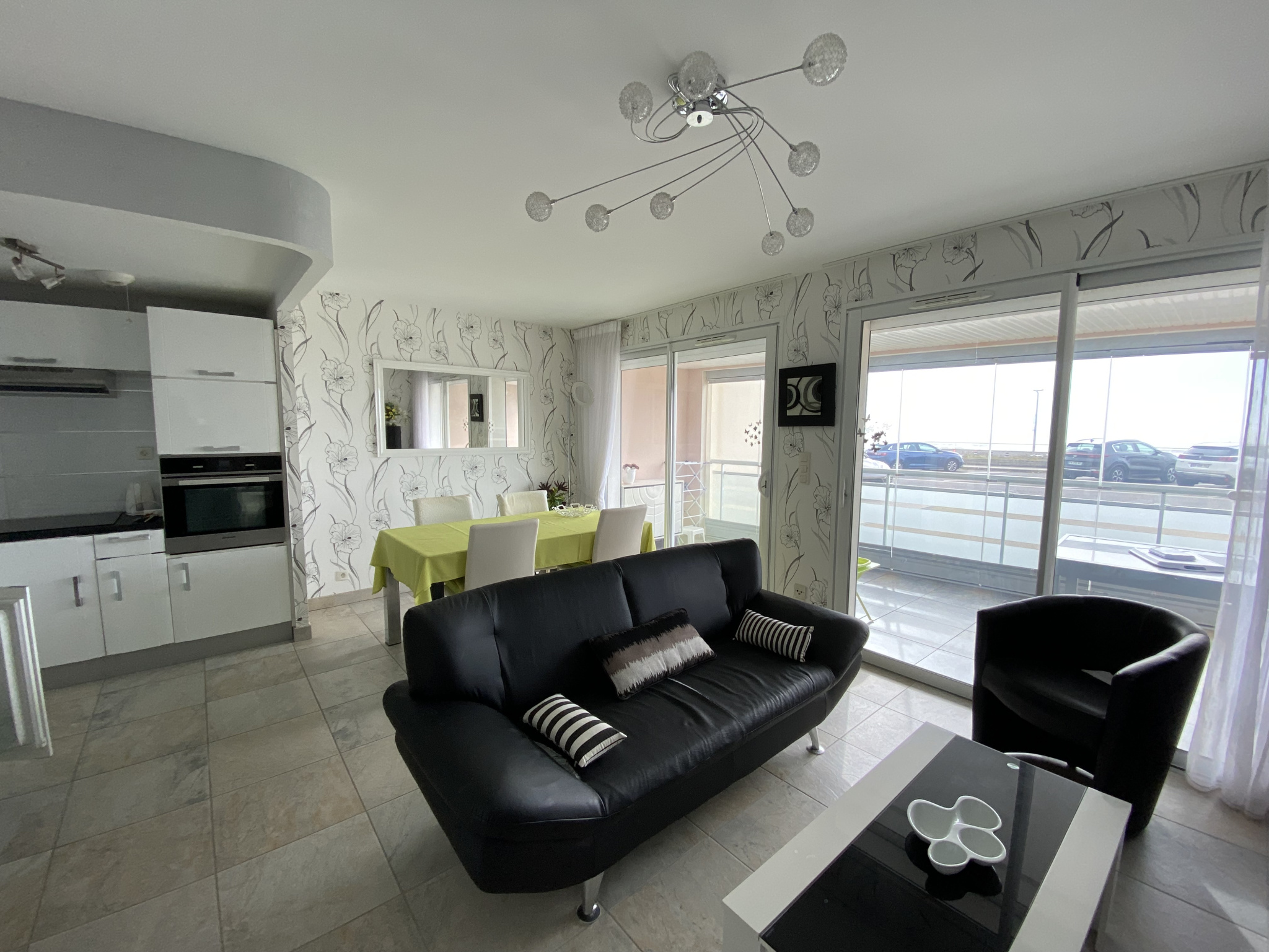 Salon séjour donnant sur un balcon avec une vue latérale sur...