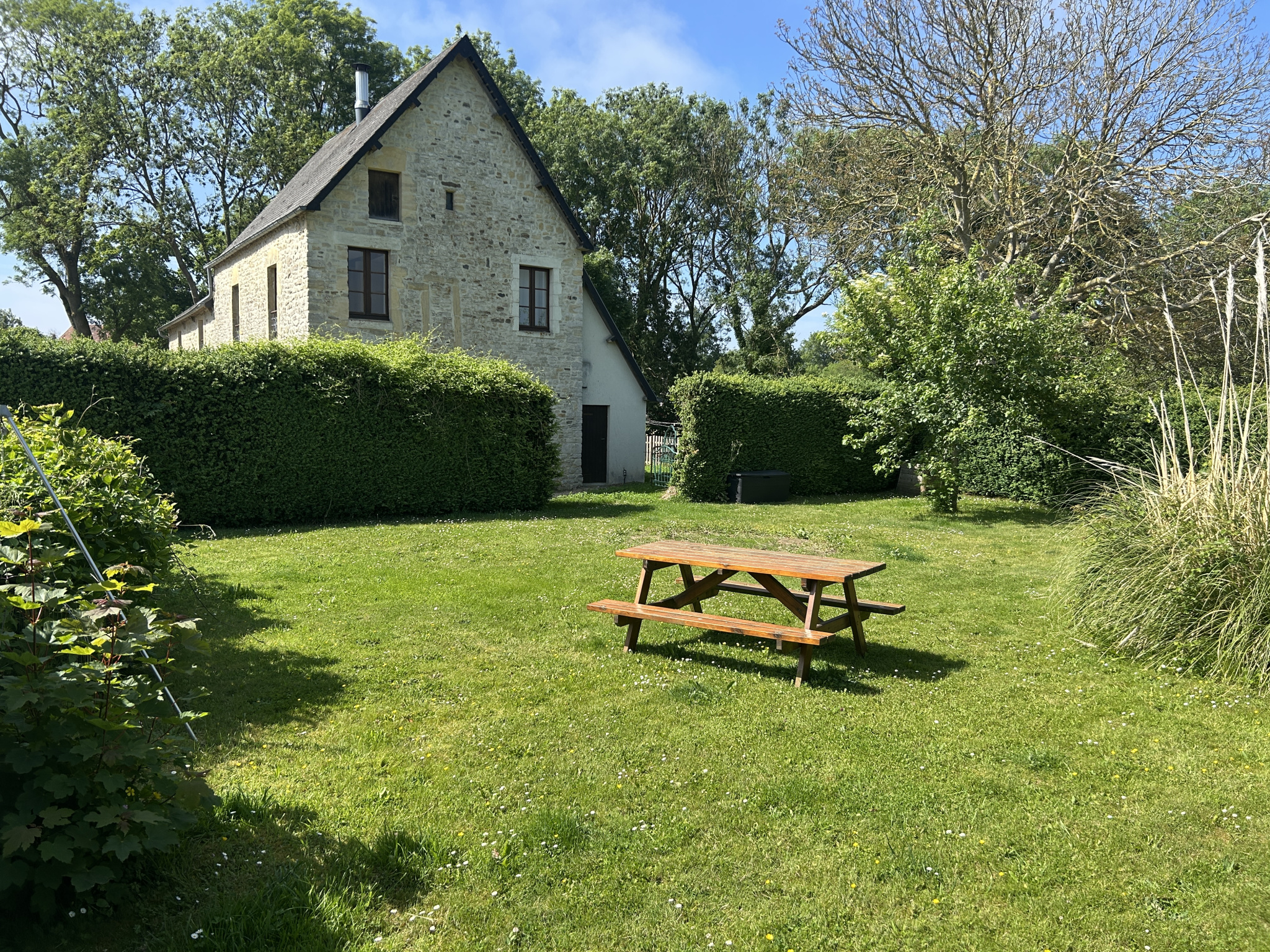 Idéalement située à quelques pas des célèbres plages du Débarquement, cette belle maison ancienne de caractère abrite trois gîtes réunis sous le même toit. Avec ses poutres apparentes, son exposition sud-ouest et son terrain arboré de 1267 m2, elle offre un ca...