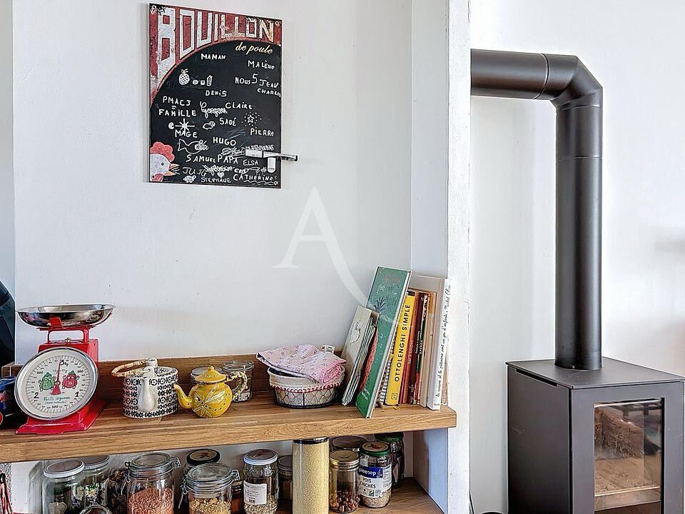 L'appartement offre une pièce de vie baignée de lumière, agrémentée d'une cuisine aménagée et équipée.