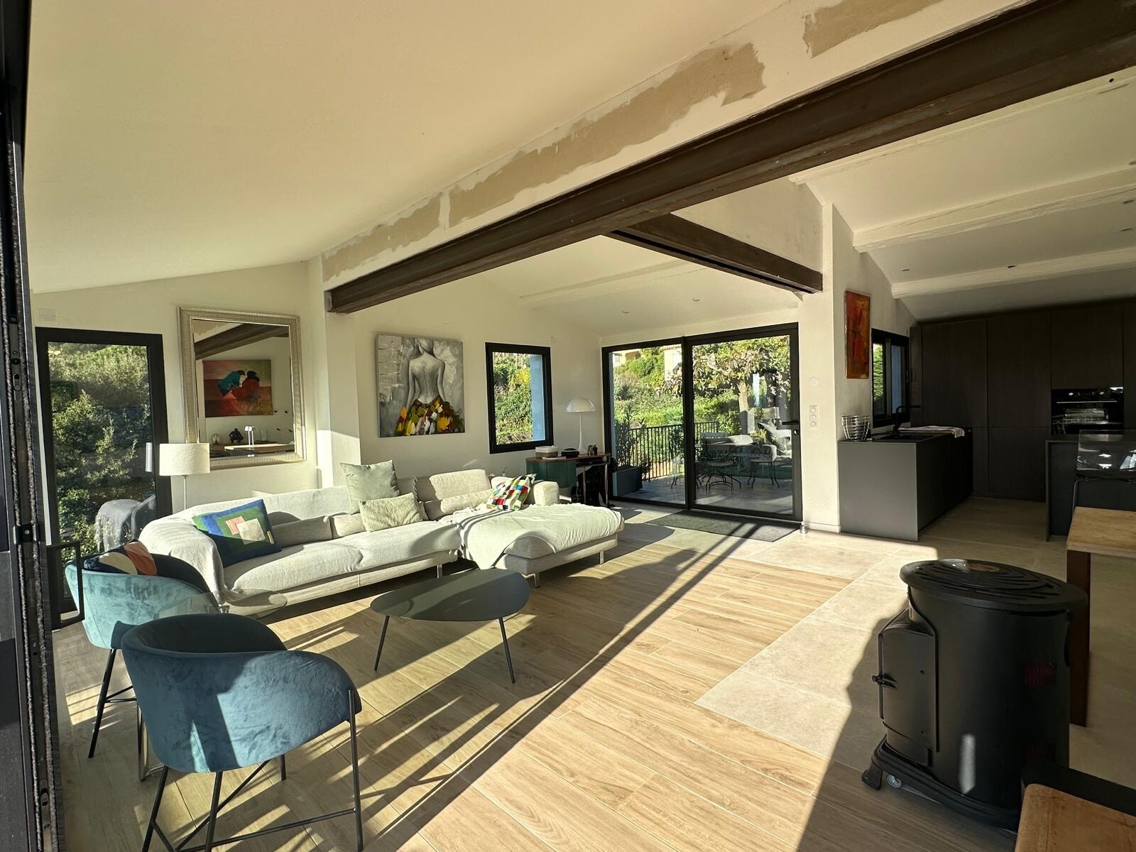 Cette maison entourée de verdure et lumineuse comprend au 1er niveau vue mer :