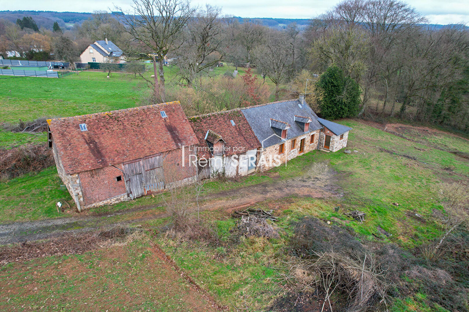 L'Immobilier par Rémi Serais Domfront vous propose à la vente cet ensemble immobilier situé à Champsecret, dans un petit lieu dit, composé de :