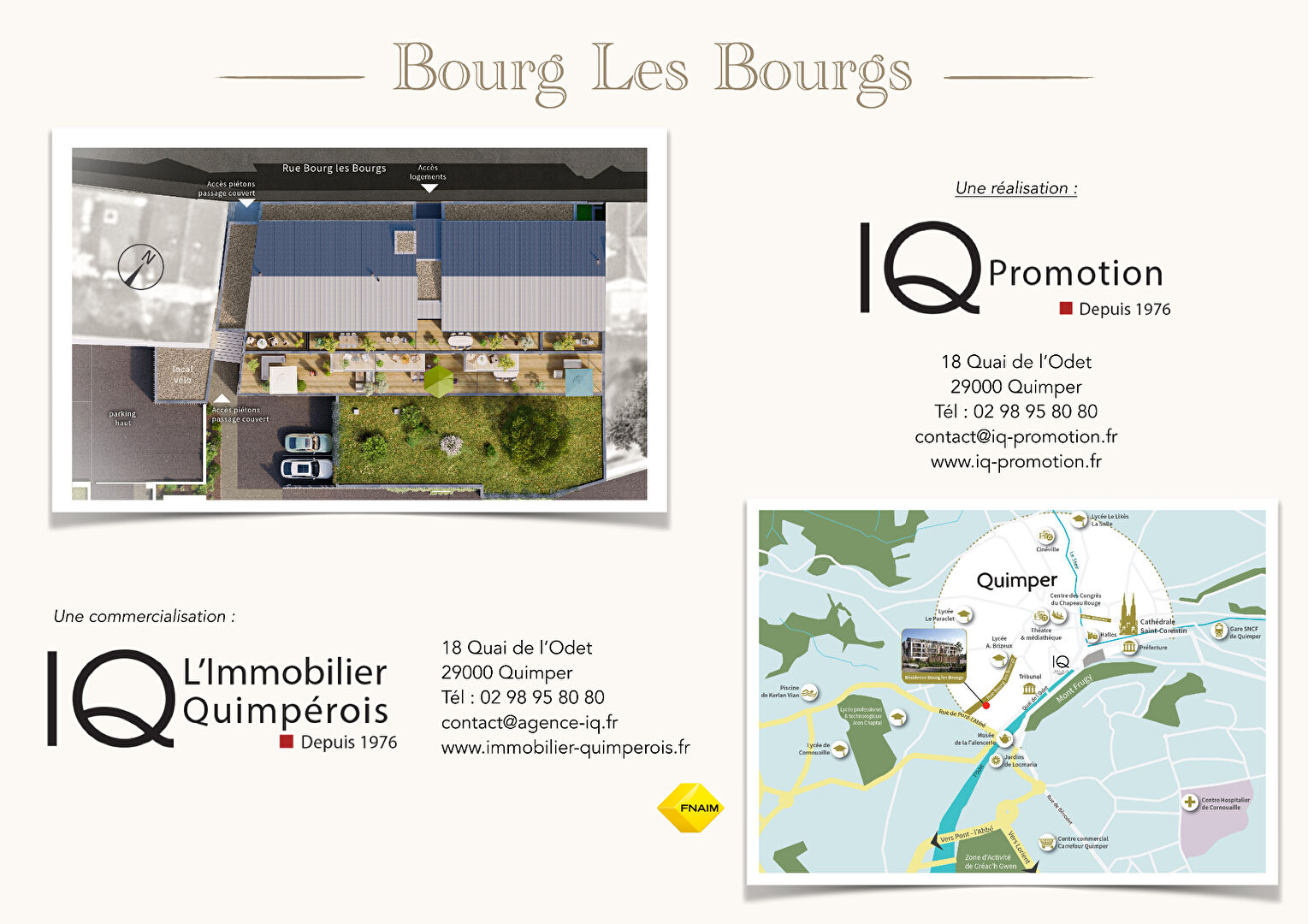 EN EXCLUSIVITÉ - Le nouveau programme immobilier « Bourg Les Bourgs » est situé en centre-ville de Quimper, à quelques minutes à pieds des halles, des commerces et de la cathédrale. Cette résidence de standing d'architecture moderne est composée de 19 app...