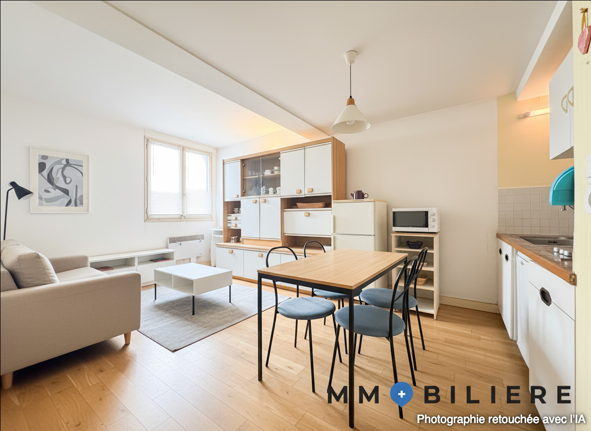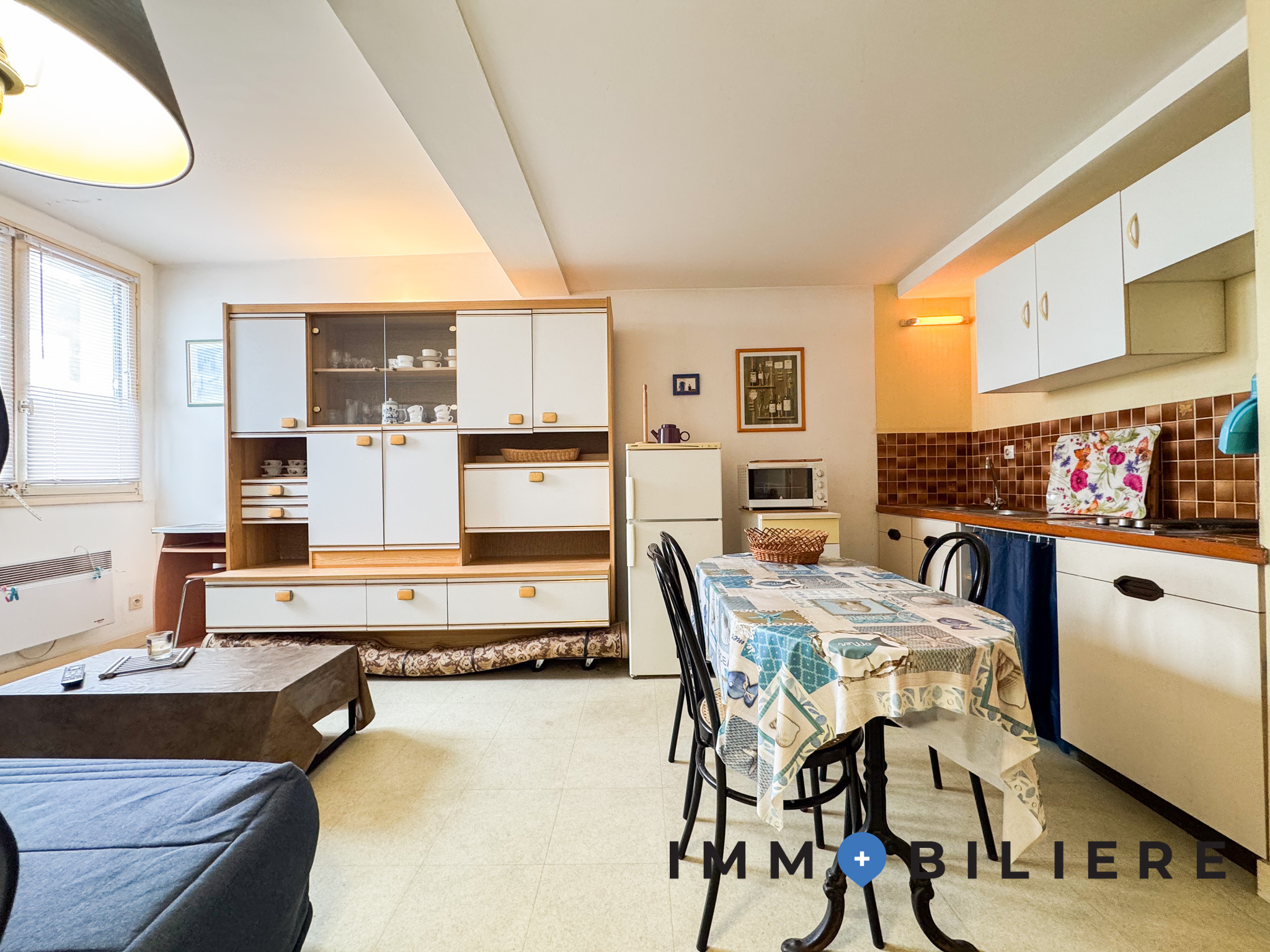 EXCLUSIVITÉ - Bourg de Larmor Plage, à 300 mètres des plages de Port Maria et Toulhars, studio de 24 m2 à rénover comprenant une entrée avec placards, pièce de vie avec cuisine ouverte et une salle d'eau avec wc.