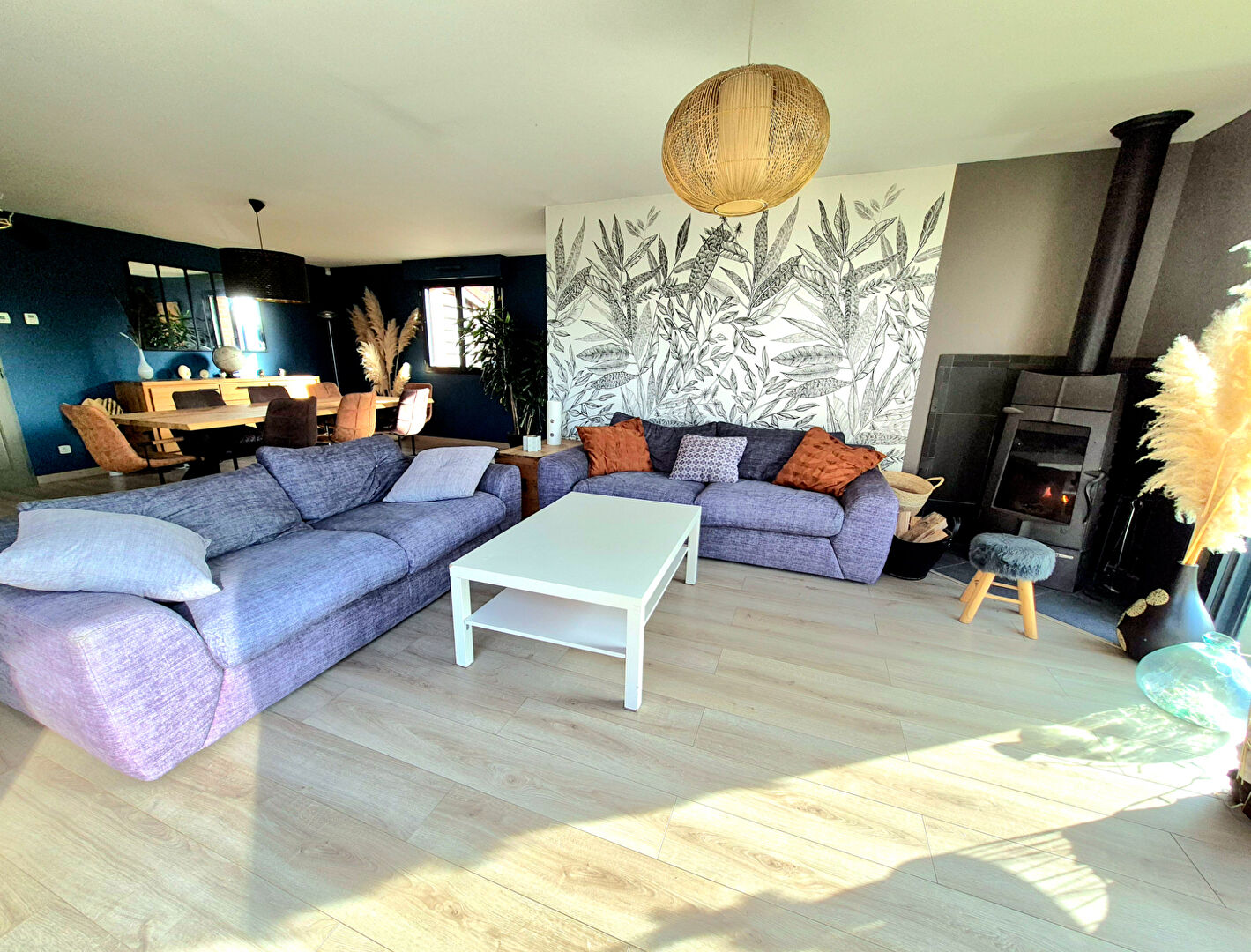 Une fois l'entrée franchie, un large séjour baigné de lumière...