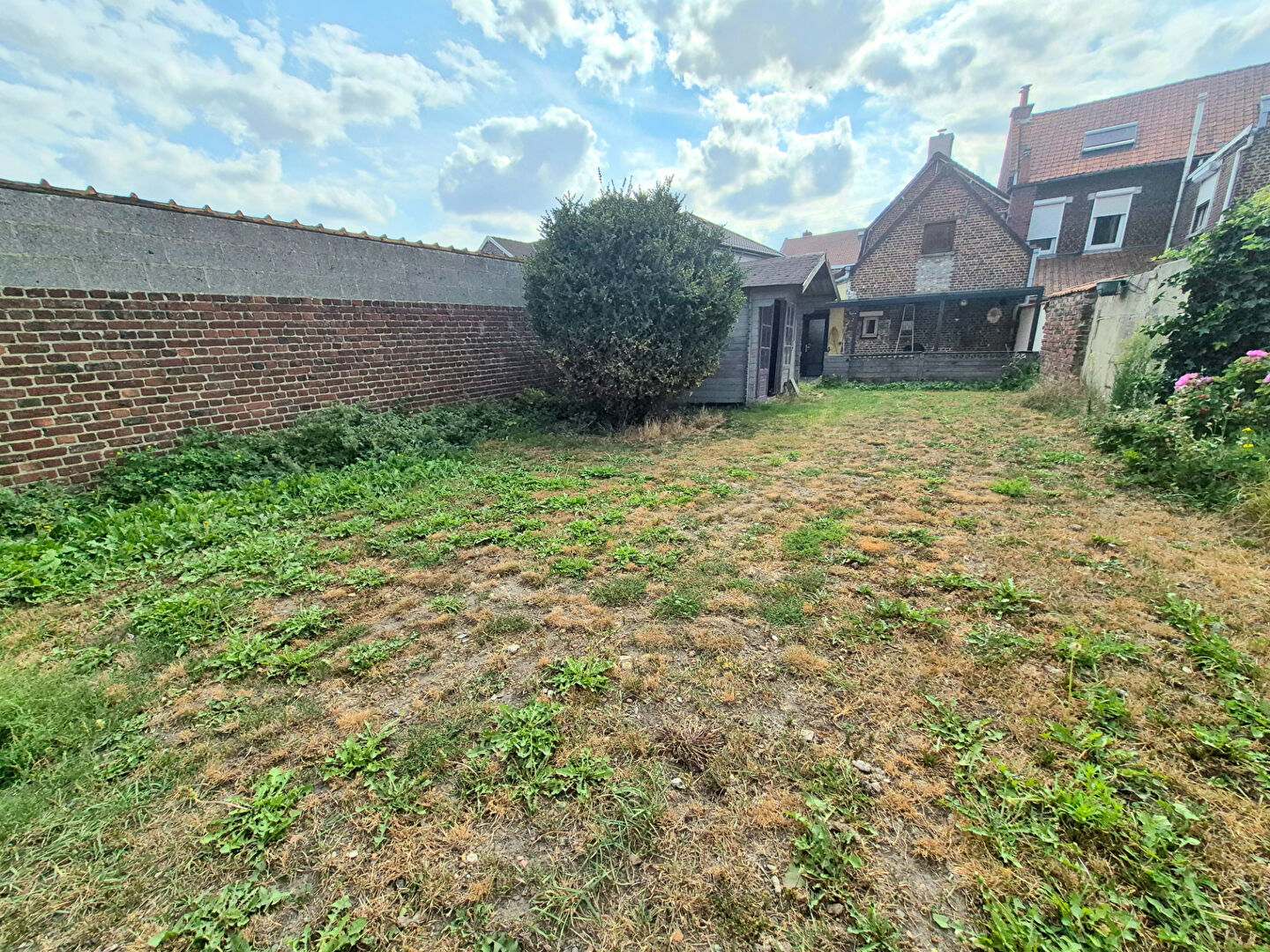 Au coeur de la commune de Fournes en Weppes, maison de ville où du hall vous entrez dans un grand séjour lumineux avec vue sur une cour lumineuse avec une dépendance, une cuisine meublée et un WC ; à l'étage le couloir équipé de placards dessert deux cham...