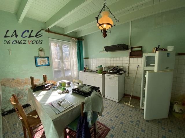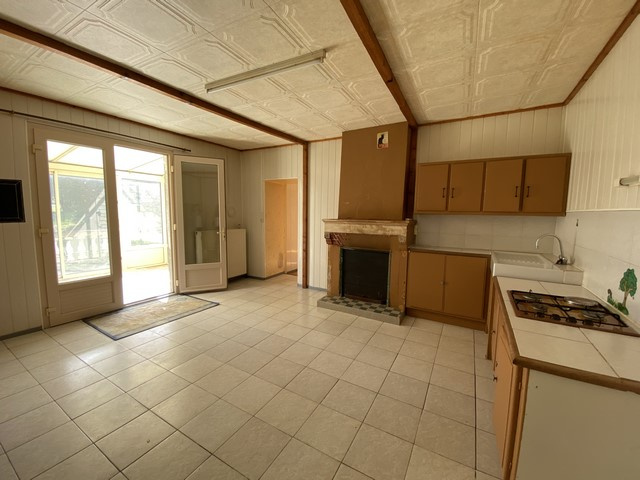Cette maison ancienne à rénover située en centre-bourg se compose au RDC d'une entrée, une cuisine, un spacieux séjour, 2 chambres, un cellier, une salle d'eau et des toilettes.