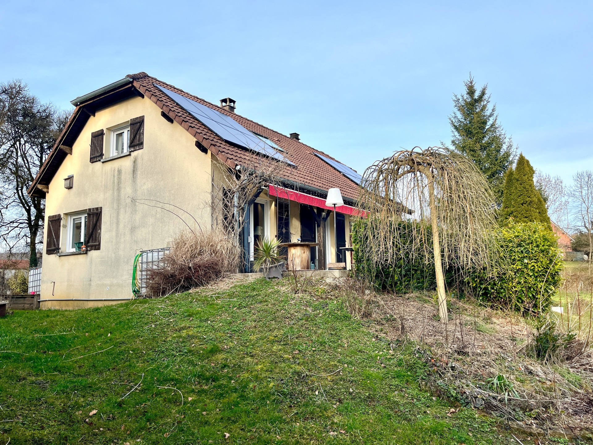 Succombez au charme de cette maison T6 de caractère située dans un écrin de verdure au coeur du village de Laire entre Montbeliard et Hericourt .<BR><BR> comprenant :<BR><BR>- au RDC , entrée , garage, buanderie, chaufferie<BR>...