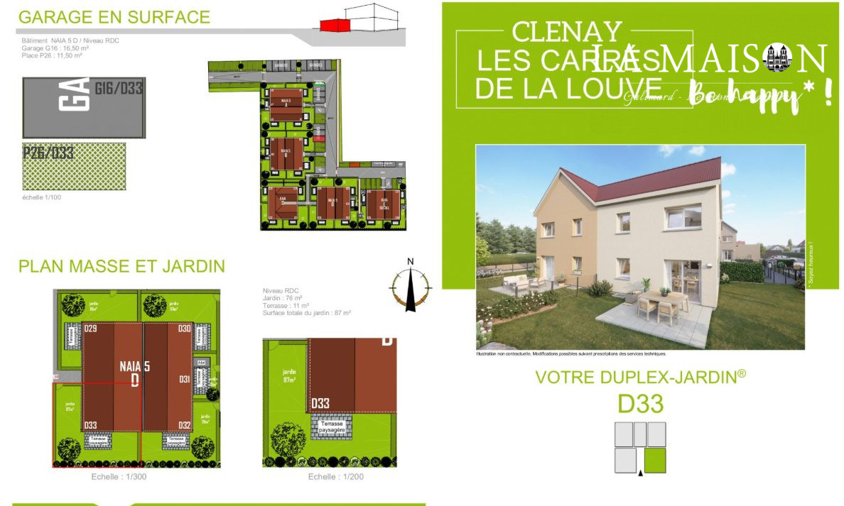 CLENAY, à 10 mn de DIJON, PROGRAMME NEUF, VENTE EN ETAT FUTUR D'ACHEVEMENT dans un quartier calme, un appartement en duplex de type 4 exposé Sud et Ouest et comprenant :