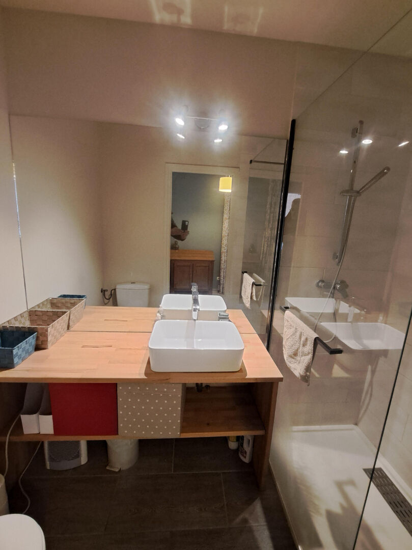 Au rez-de-chaussée, un grand garage de 50 m² doté d'un ballon ECS et WC, permet de stationner plusieurs véhicules ou...