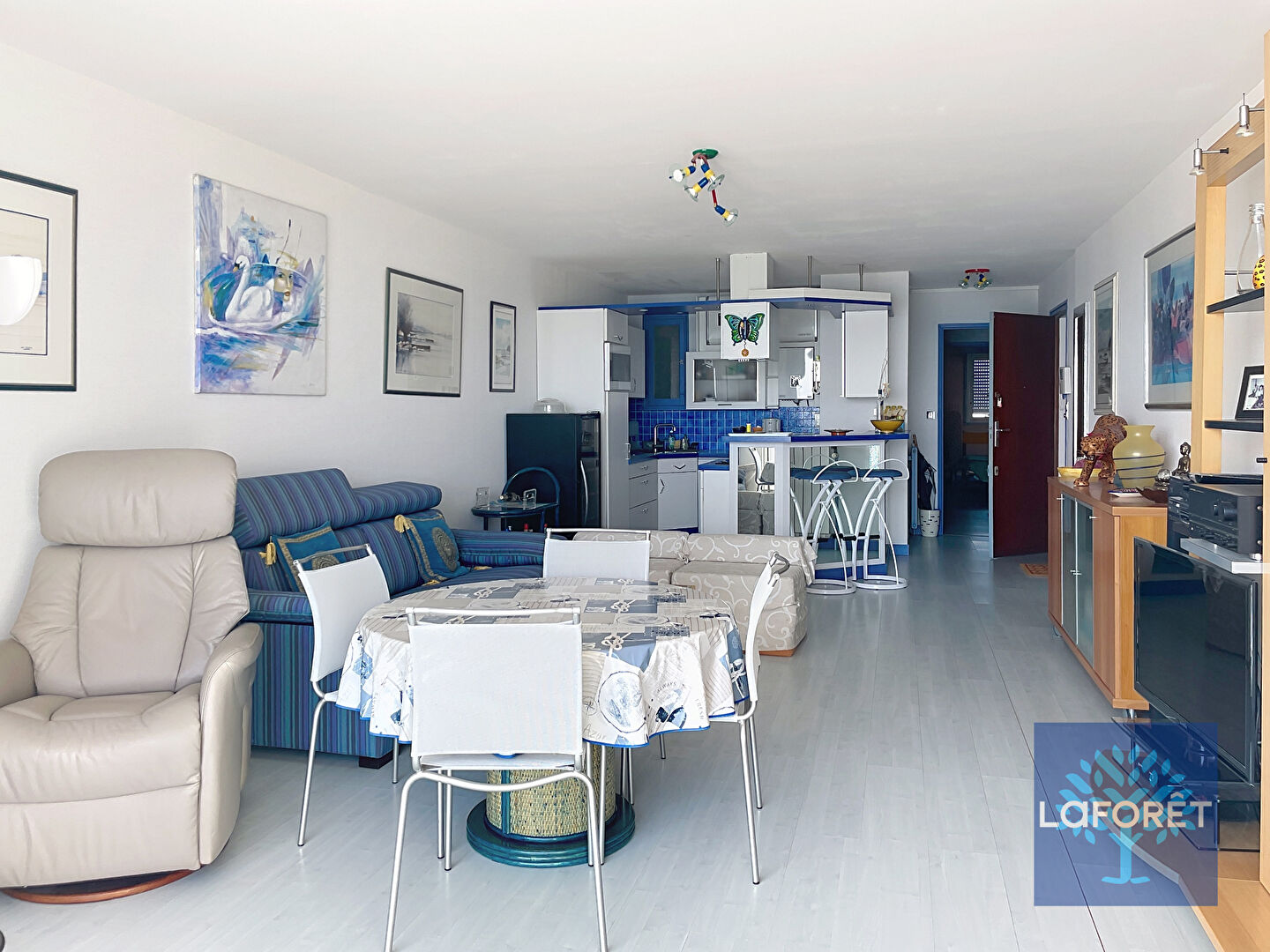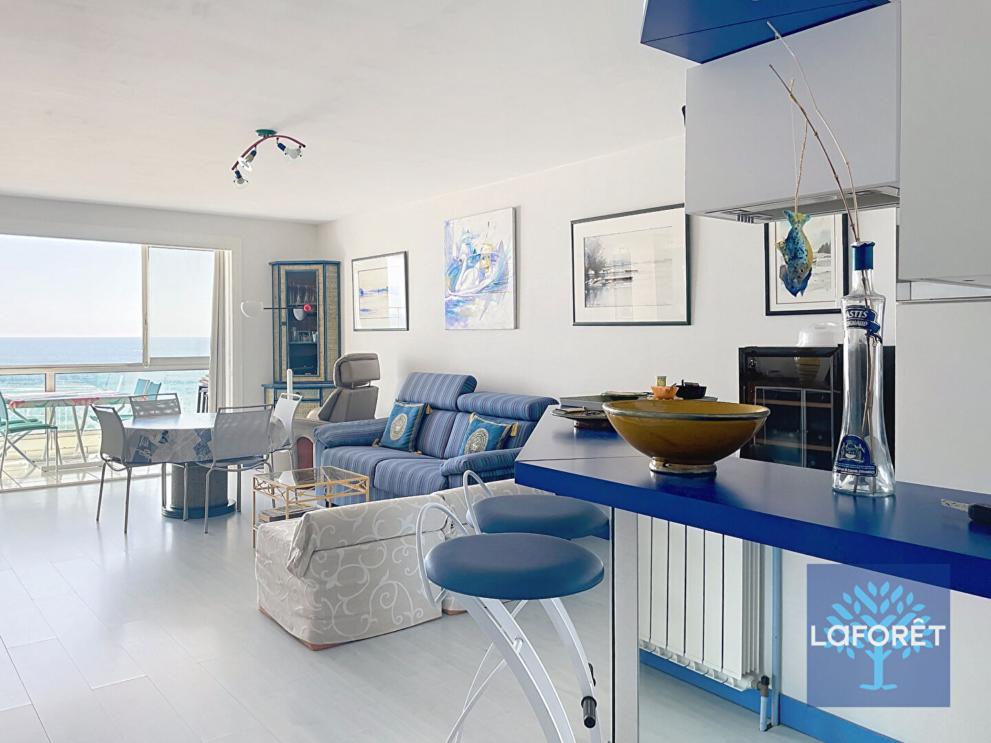 Bel appartement face mer , accès direct à la plage et à la piscine eau de mer, à proximité des commerces du centre-ville situé dans le quartier privilégié du Passage et du Palais des Congrès des Atlantes composé d'une entrée avec placard, un grand salon-...