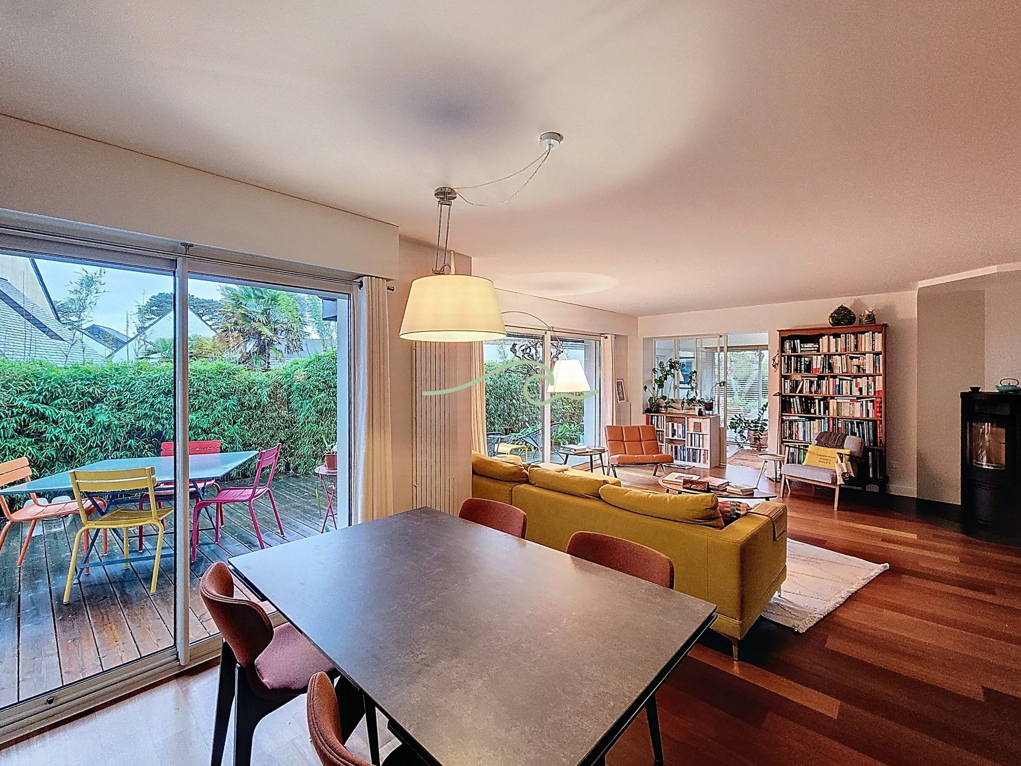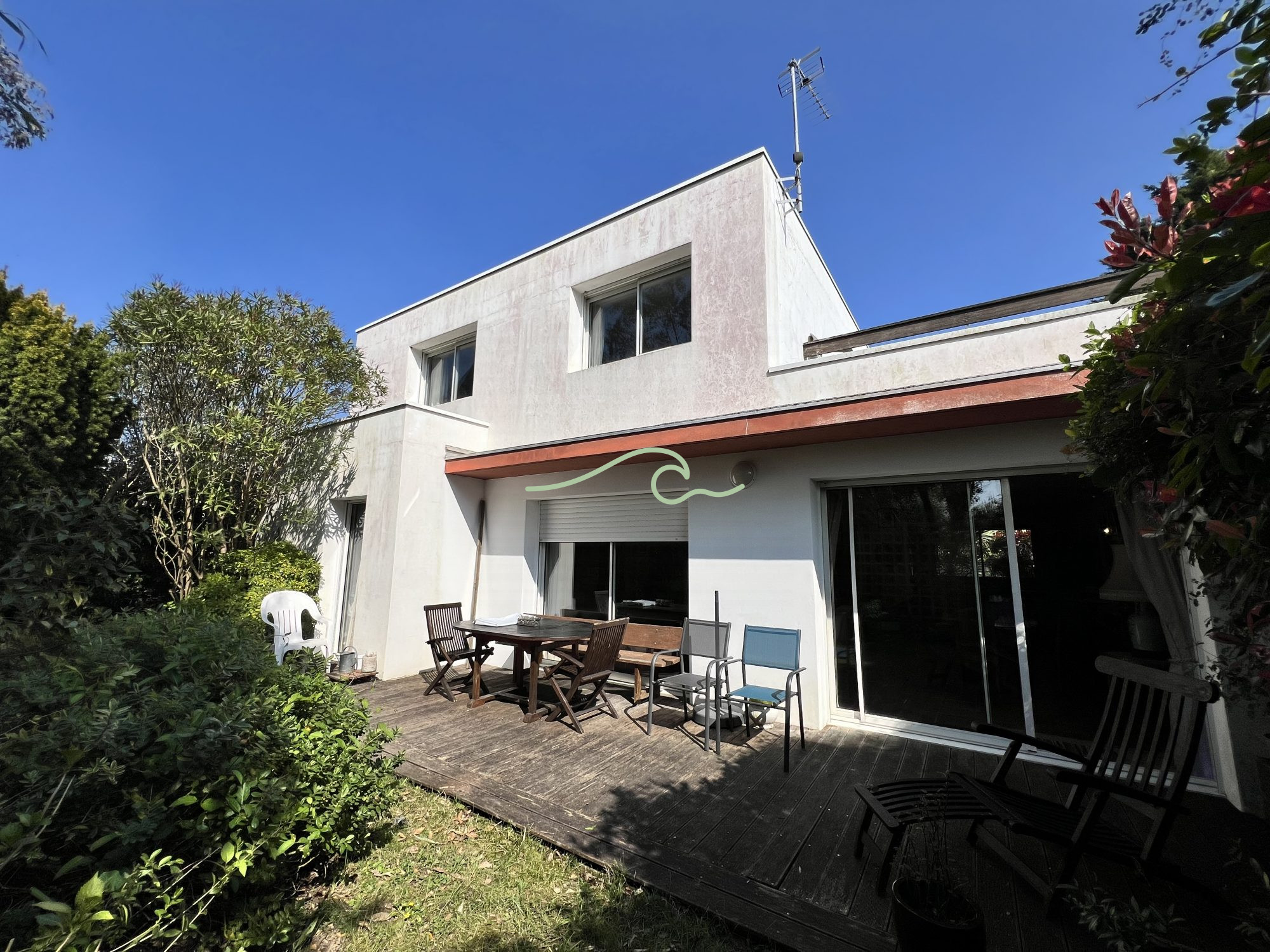 Dans un cadre de verdure, cette maison contemporaine bénéficie d'un bel ensoleillement. Au rdc le séjour salon avec cheminée et la cuisine équipée sont en accès direct sur la terrasse, ainsi que la chambre parentale. une salle d'eau, une lingerie et ...