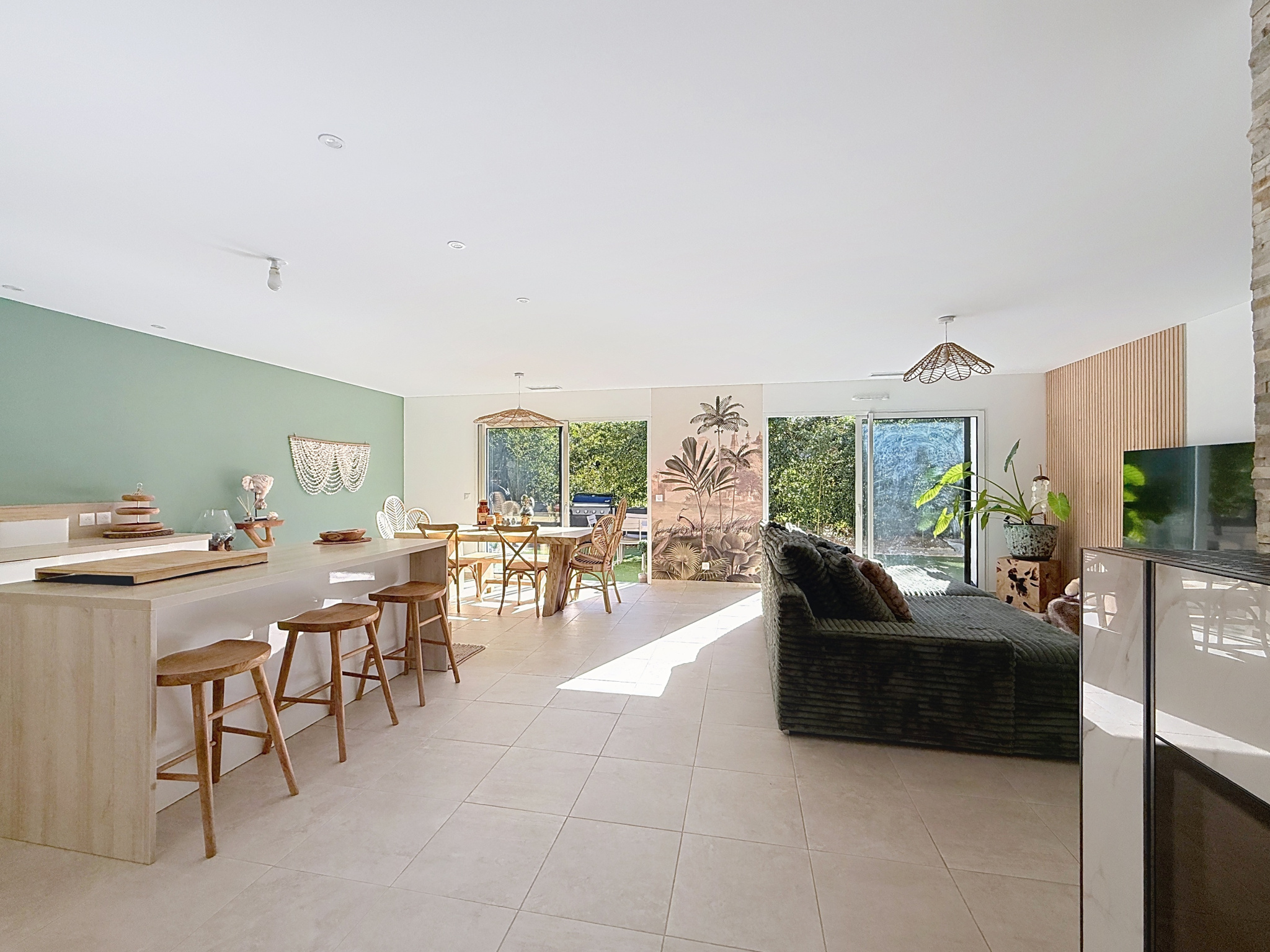 A 4/5 minutes à pied de la plage, au calme, en fond d'impasse, venir découvrir cette agréable villa climatisée de 138m2 hab. (101m2 loi Carrez) sur 400m2 de terrain clos et arboré. Le niveau principal accueille un confortable séjour / cuisine prolongé d...