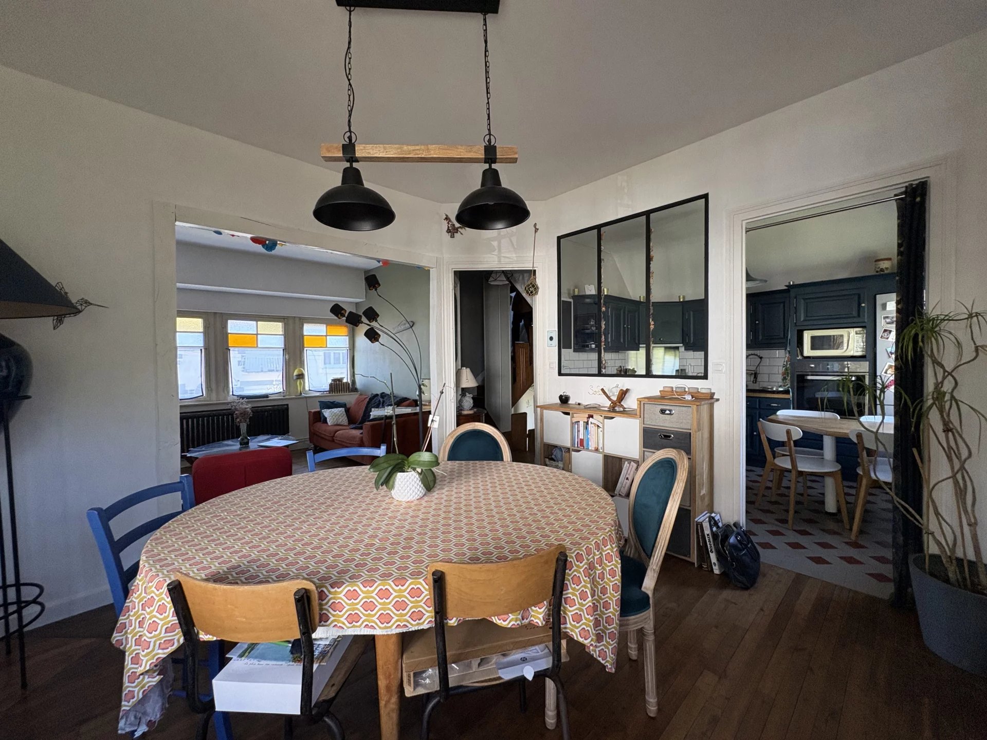 SAINT BRIEUC Robien, proche gare S.N.C.F. et 5mns centre ville, dans cadre de verdure, spacieuse maison de ville 7 P. comprenant : entrée - vaste séjour salon avec cheminée - cuisine équipée, 3 chambres, bureau, salon télé ouvrant sur terrasse de 35 m2, dressi...