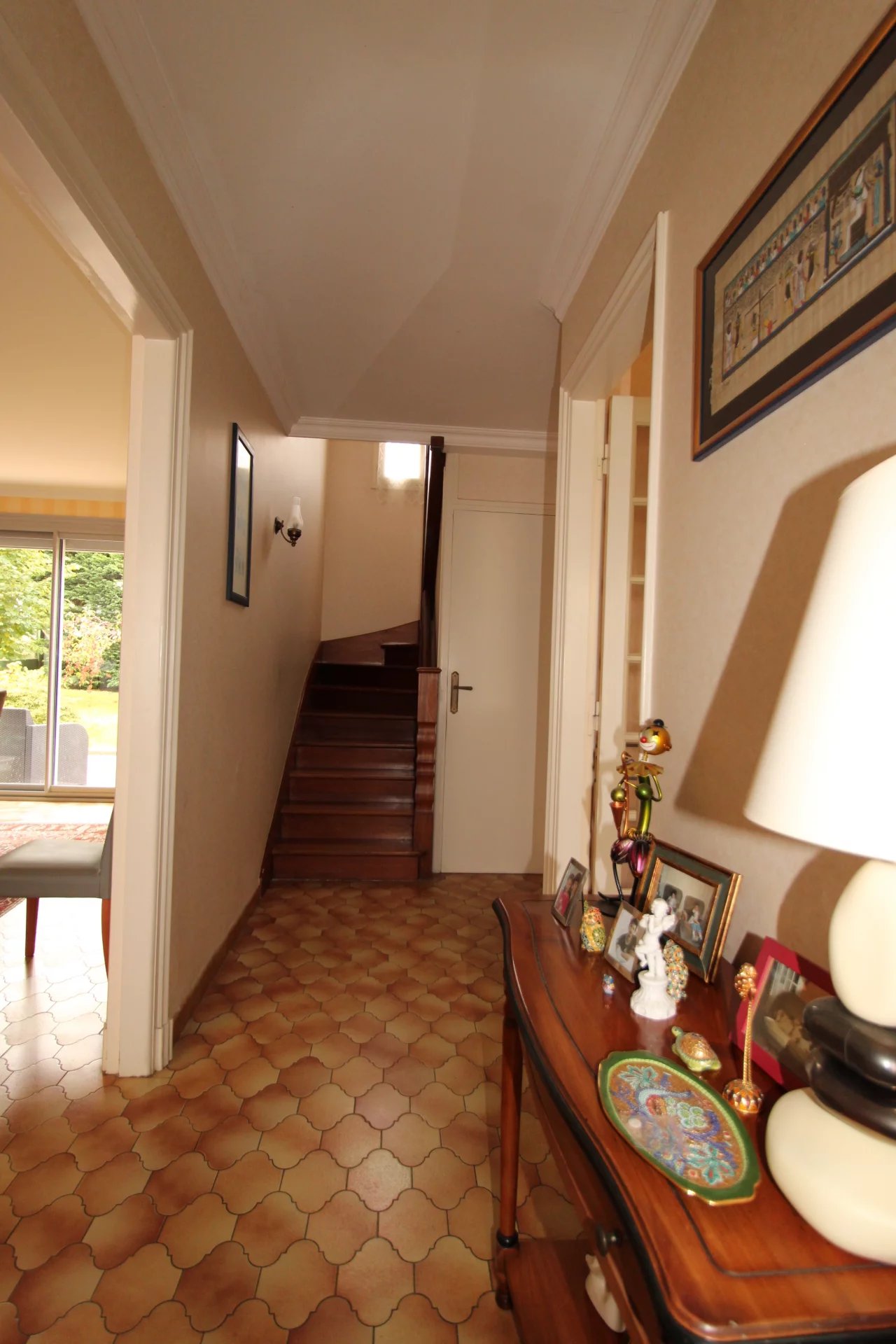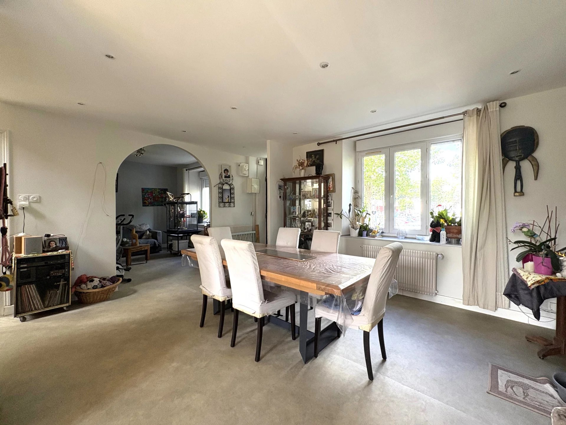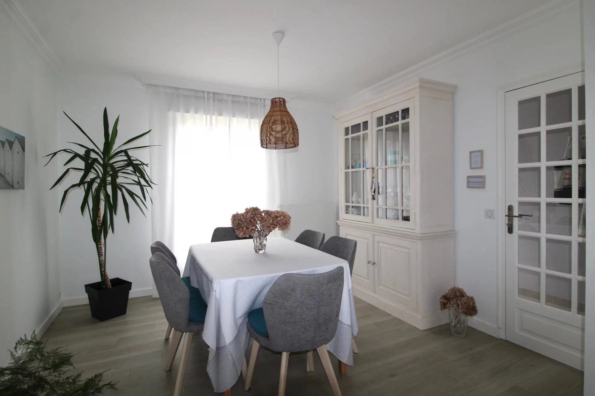 ST BRIEUC, jolie maison 6 P. en parfait état comprenant : entrée, salon avec poêle - salle à manger - cuisine équipée, bureau salon, 3 chambres, salle d'eau, W.C. - 2 garages - jardin clos et arboré