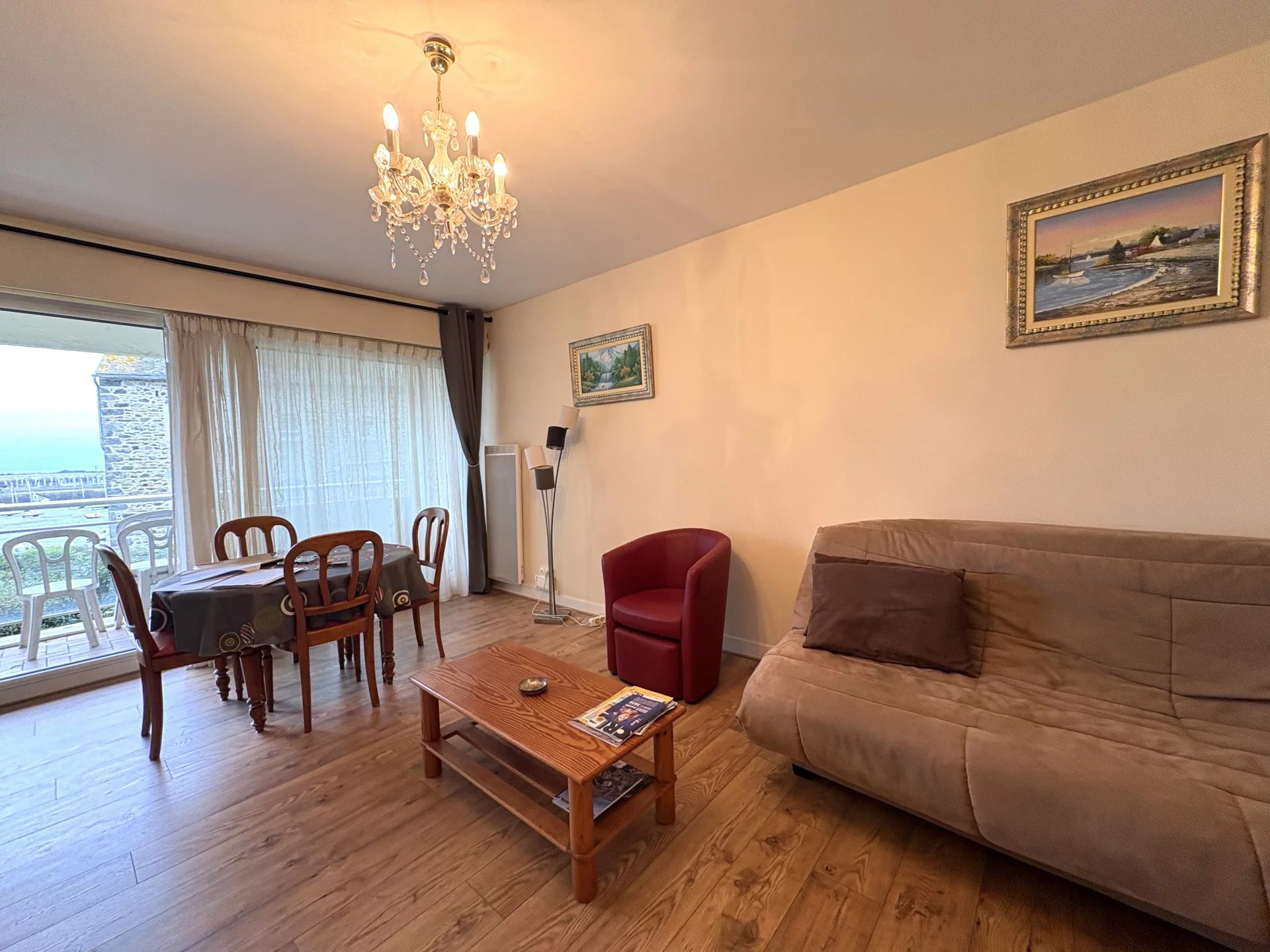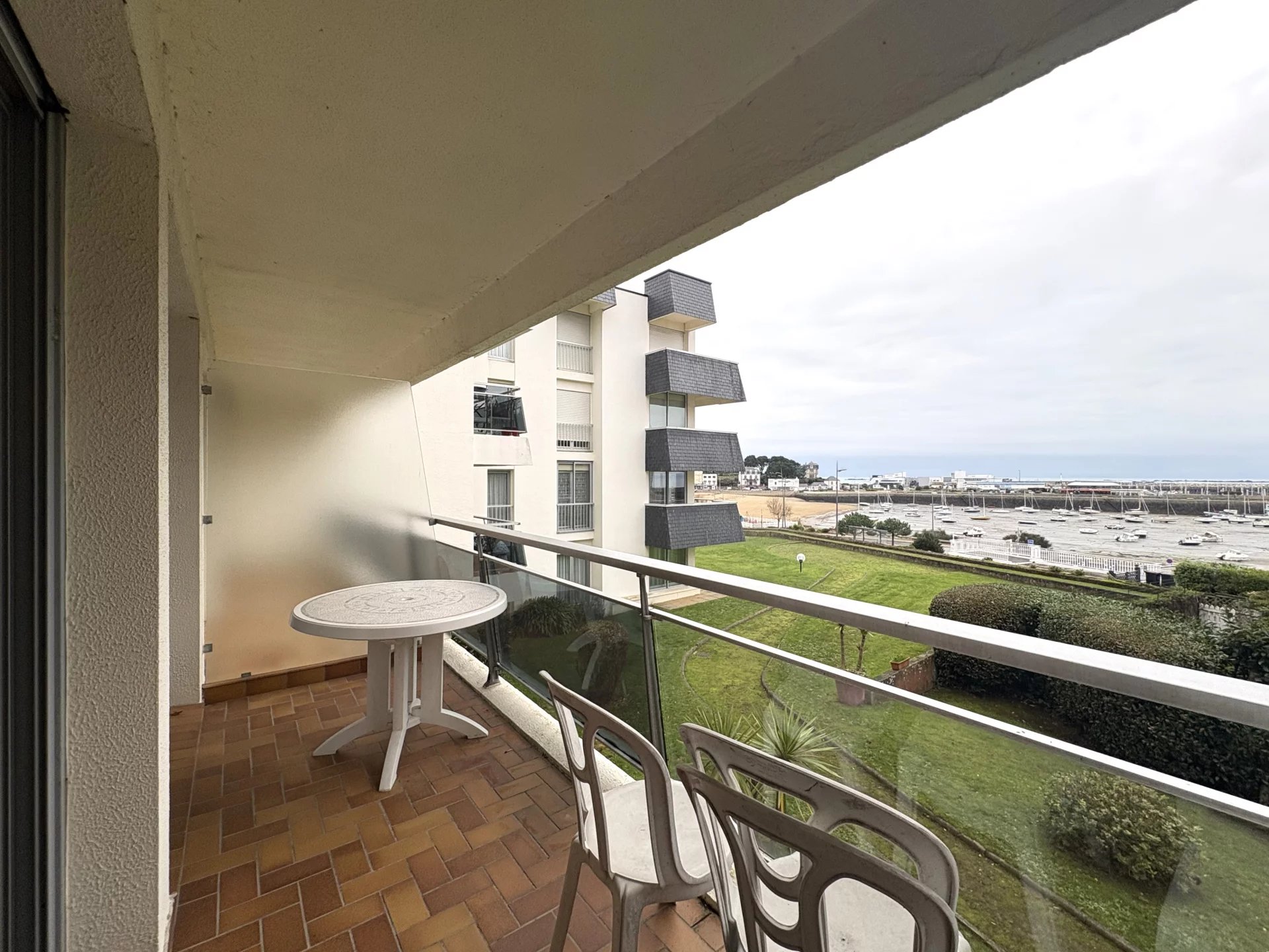 SAINT QUAY PORTRIEUX, dans résidence avec ascenseur agréable appartement T1bis avec vue sur le port comprenant : entrée avec rangement, séjour - cuisine équipée largement vitrées sur un terrasse avec vue sur la plage du port, 1 chambre cabine, salle de bains -...