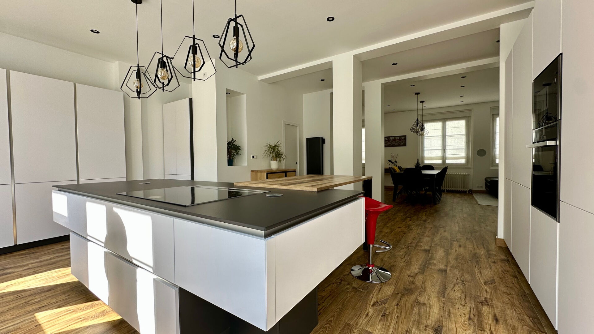 Son séjour double avec une belle cuisine ouverte aménagée et...