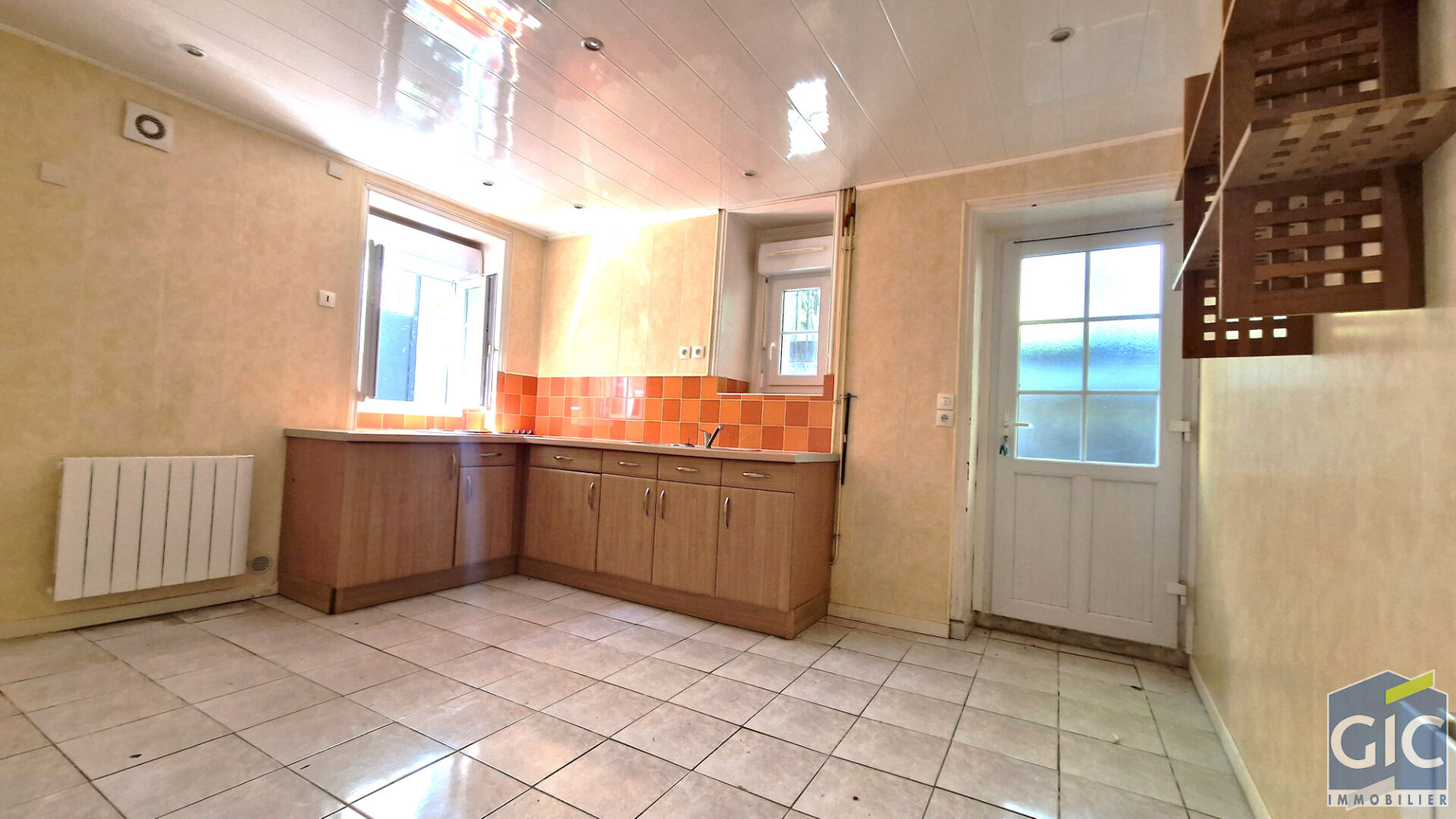 Entrée avec placard, chambre avec salle d'eau et cuisine ouverte avec arrière cuisine.<...