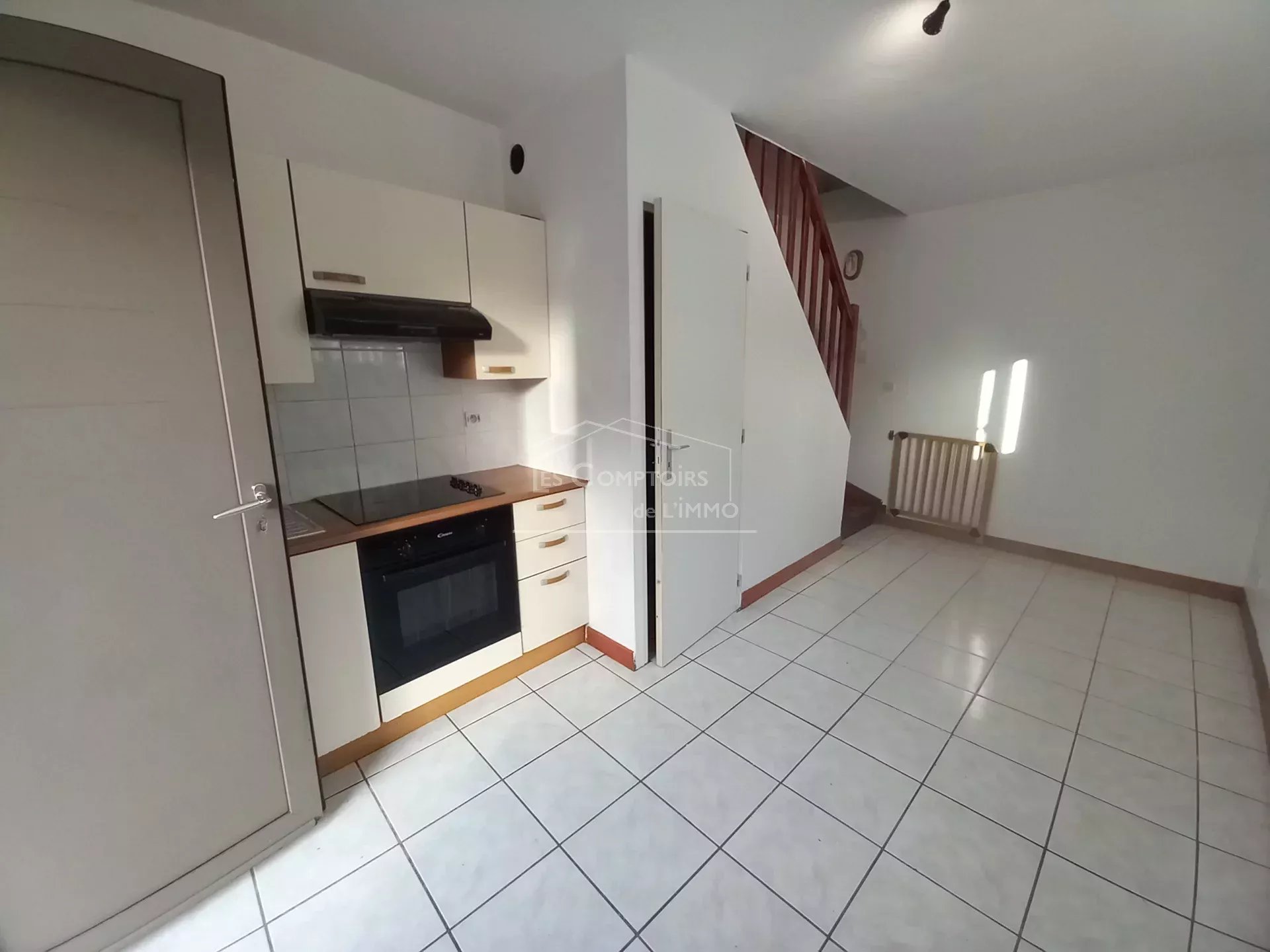 St Nazaire, quartier Guindreff,Un appartement/Maison situé au RDC et combles, composé d'un séjour avec Kitchenette (plaque, hotte, four), WC, escalier privatif donnant accès à une chambre avec douche, lavabo.