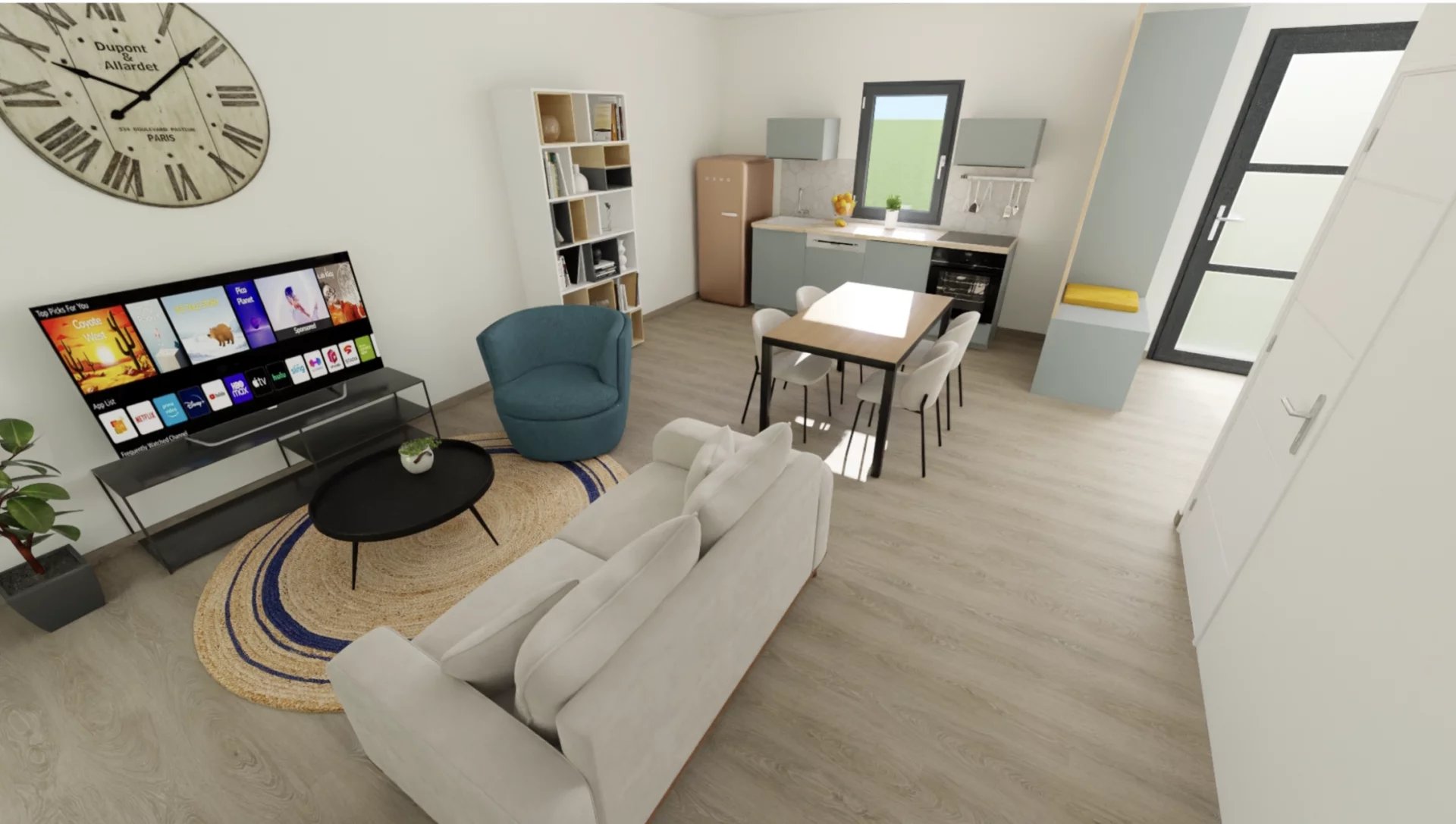 ? Grande pièce de vie salon/cuisine de 26 m²