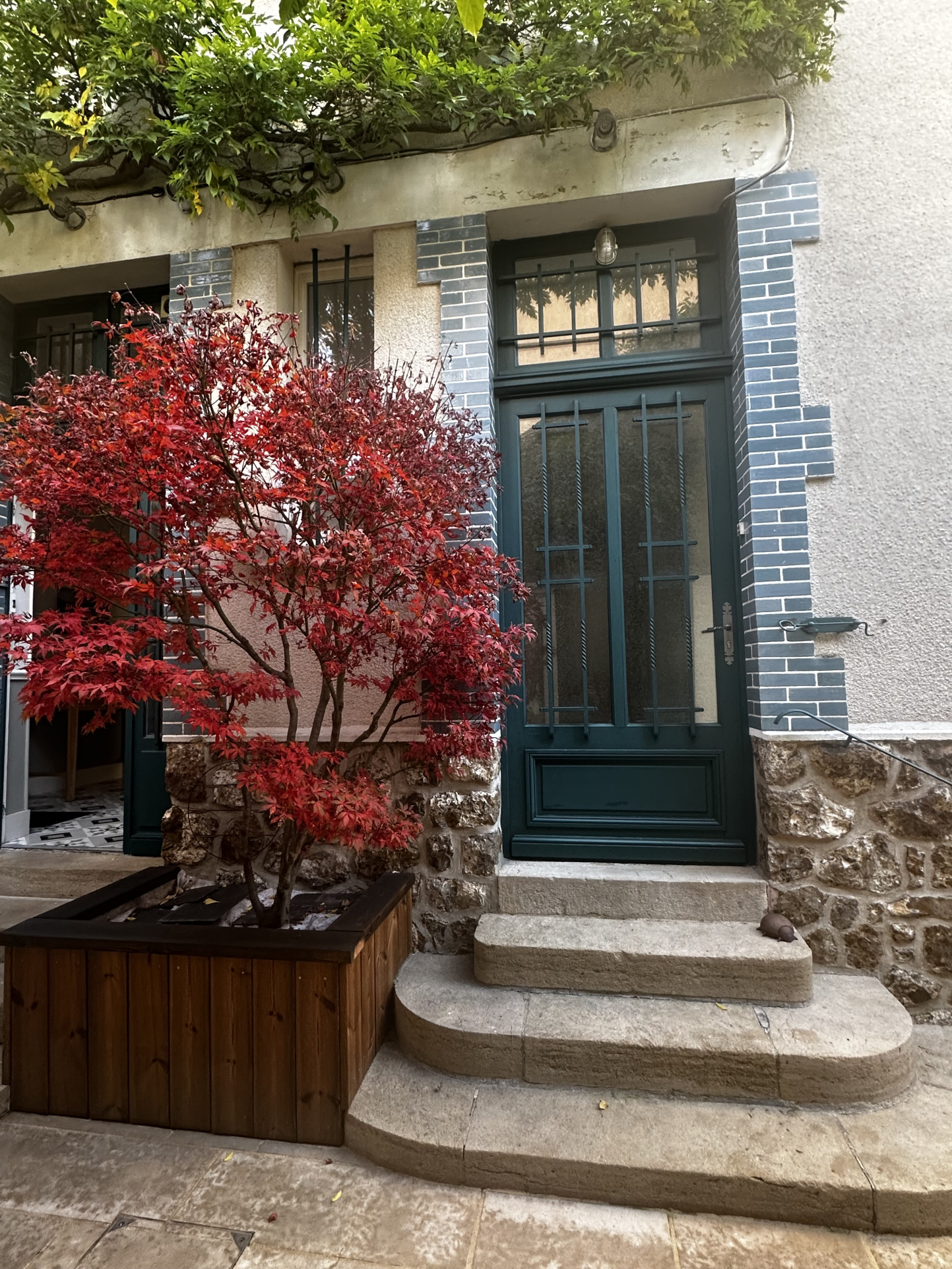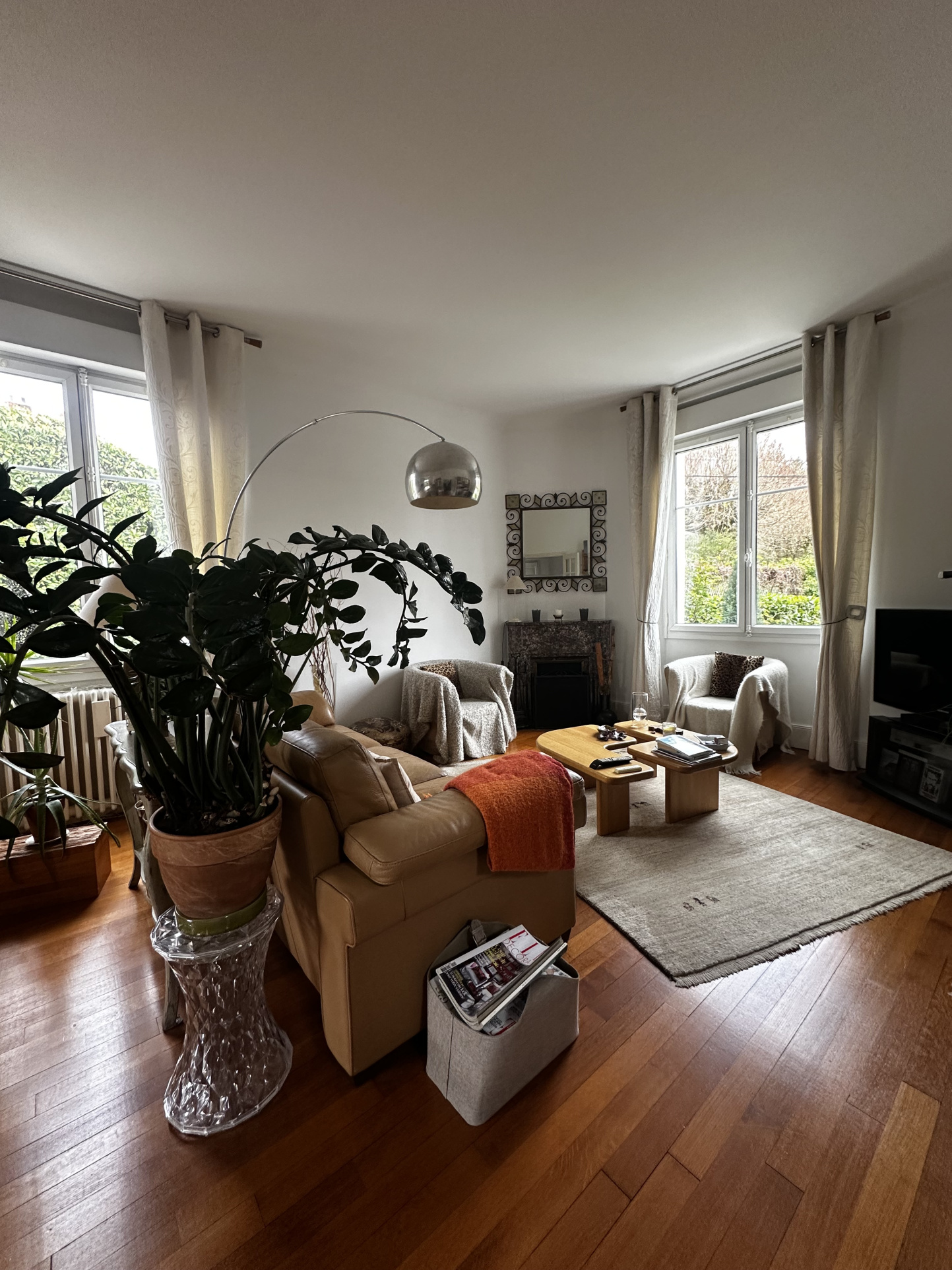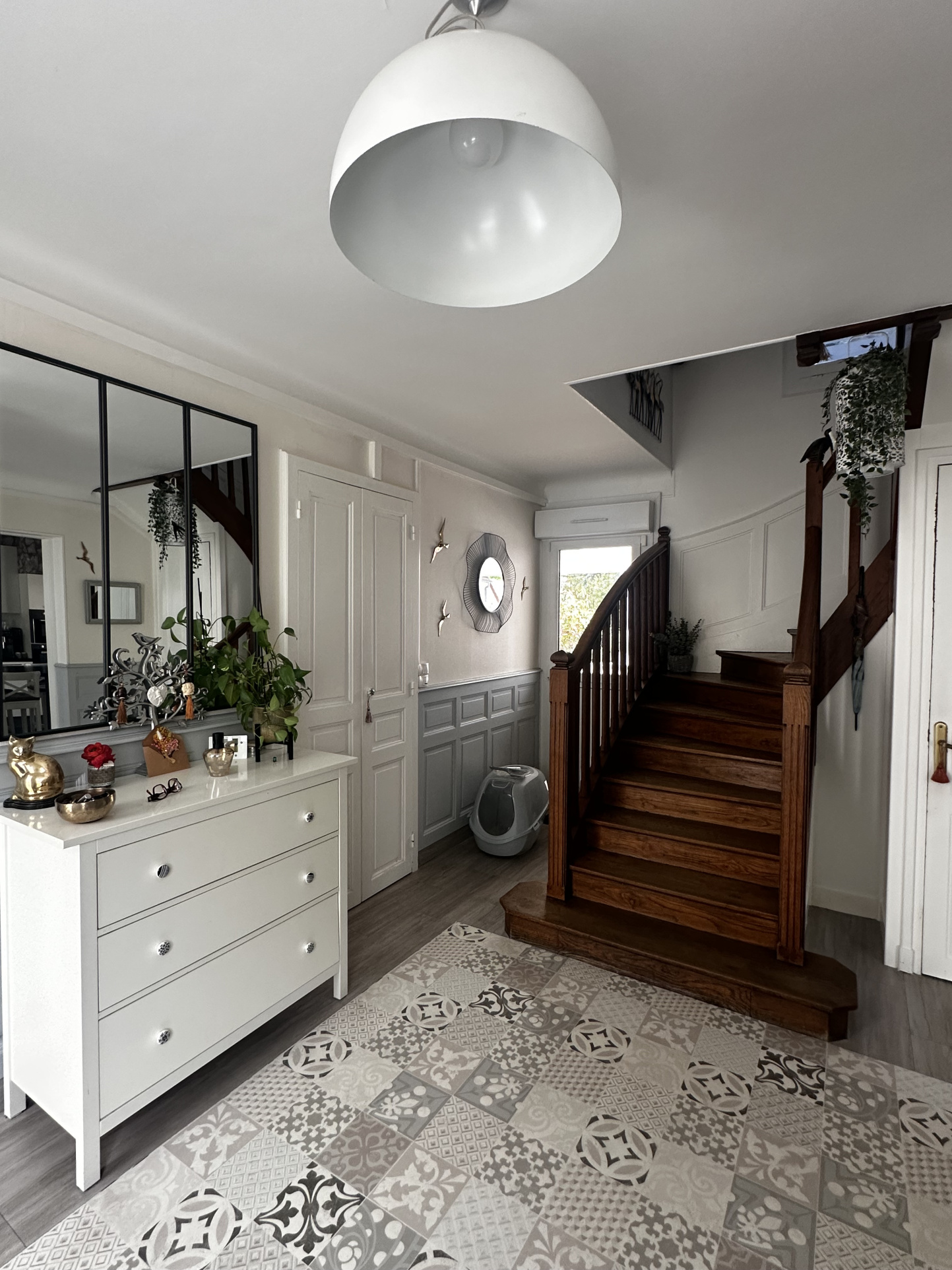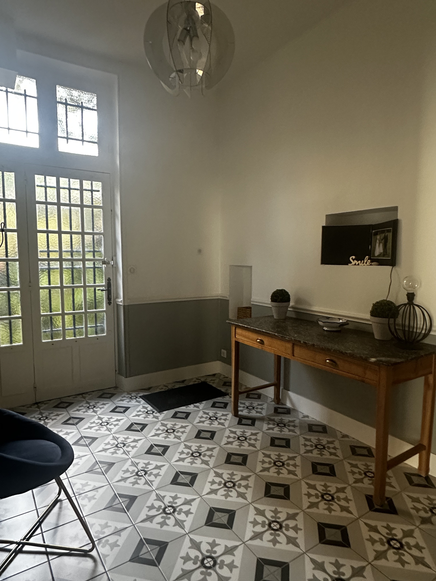 Belle maison de ville de 104 m2 comprenant au rez-de-chaussée une entrée, une pièce de vie, un petit salon, une cuisine, une véranda et un wc.