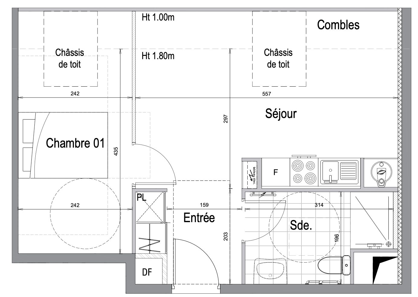 Joli T2 au 1er et dernier étage d'une petite copropriété avec faibles charges-syndic bénévole.