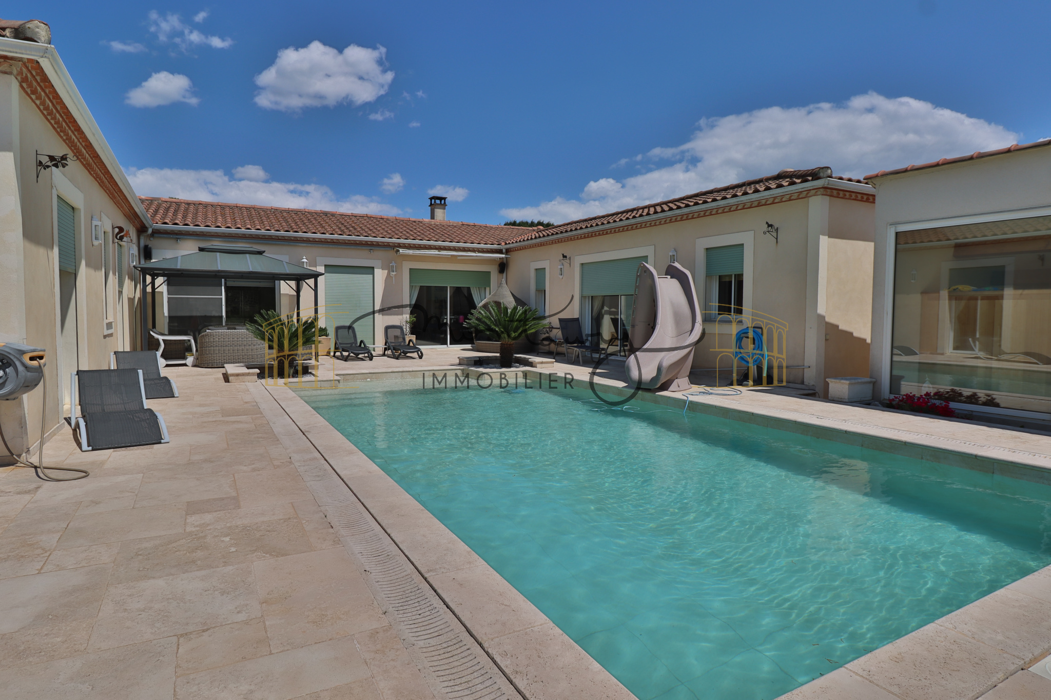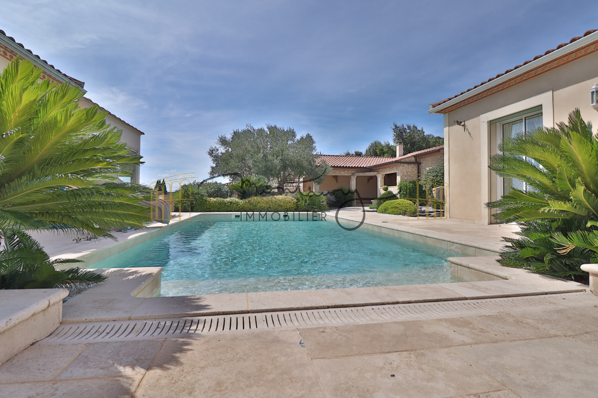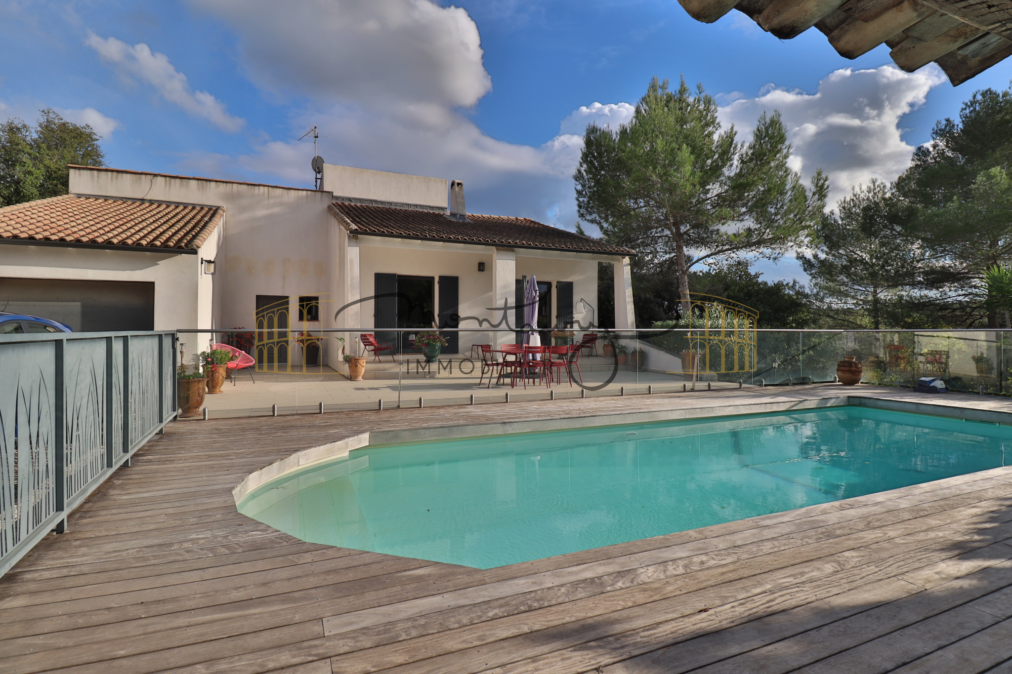 NIMES CASTANET au calme, dans environnement verdoyant, Maison alliant le charme à la modernité, construite dans les années 80, cette maison offre des espaces de vie confortables, lumineux et spacieux, cheminée double foyers, espace séjour avec belle hauteur so...