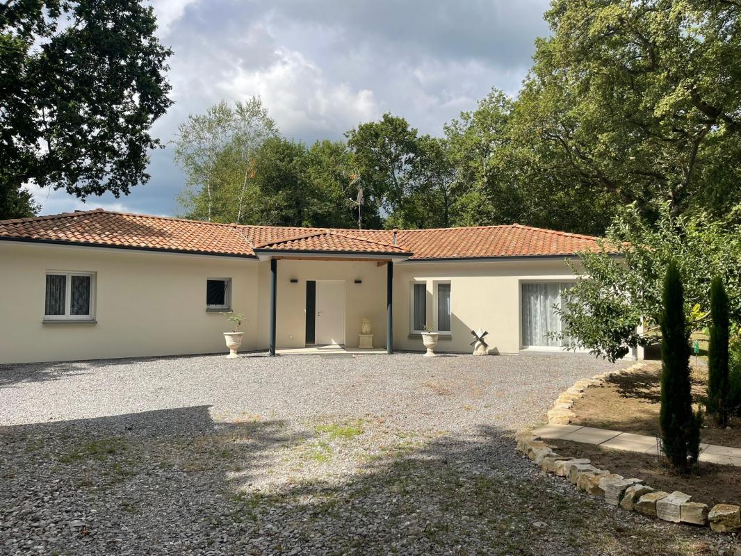 A une vingtaine de minutes de MONT DE MARSAN, agréable et fonctionnelle maison de plain-pied de 120 m² comprenant une vaste pièce de vie lumineuse avec poêle à granulés, cuisine ouverte équipée, trois belles chambres, pompe à chaleur et climatisation pour un c...
