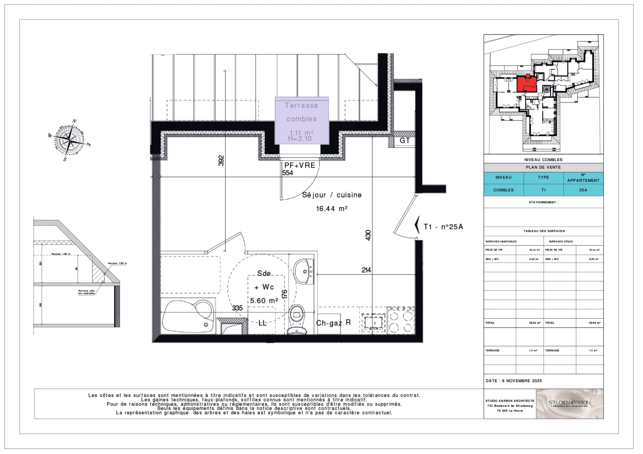 Ici, nous vous présentons un appartement de type Studio de 25m2 au 1er étage .