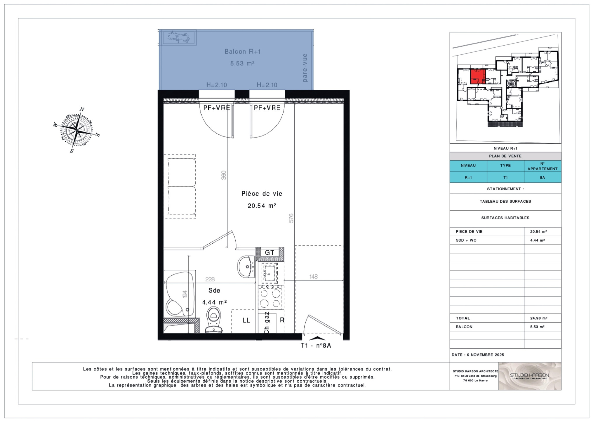 Ici, nous vous proposons un appartement de type studio de 24m2 avec balcon, ...