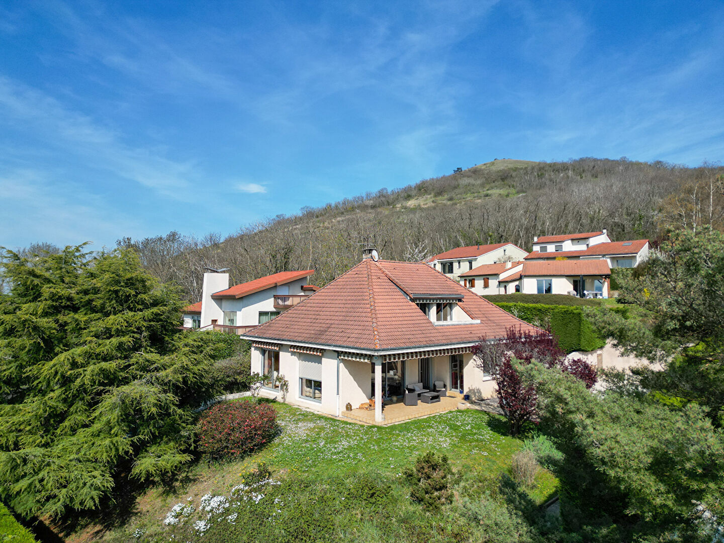 Elle est située dans un environnement arboré, sur un terrain de 550 m².