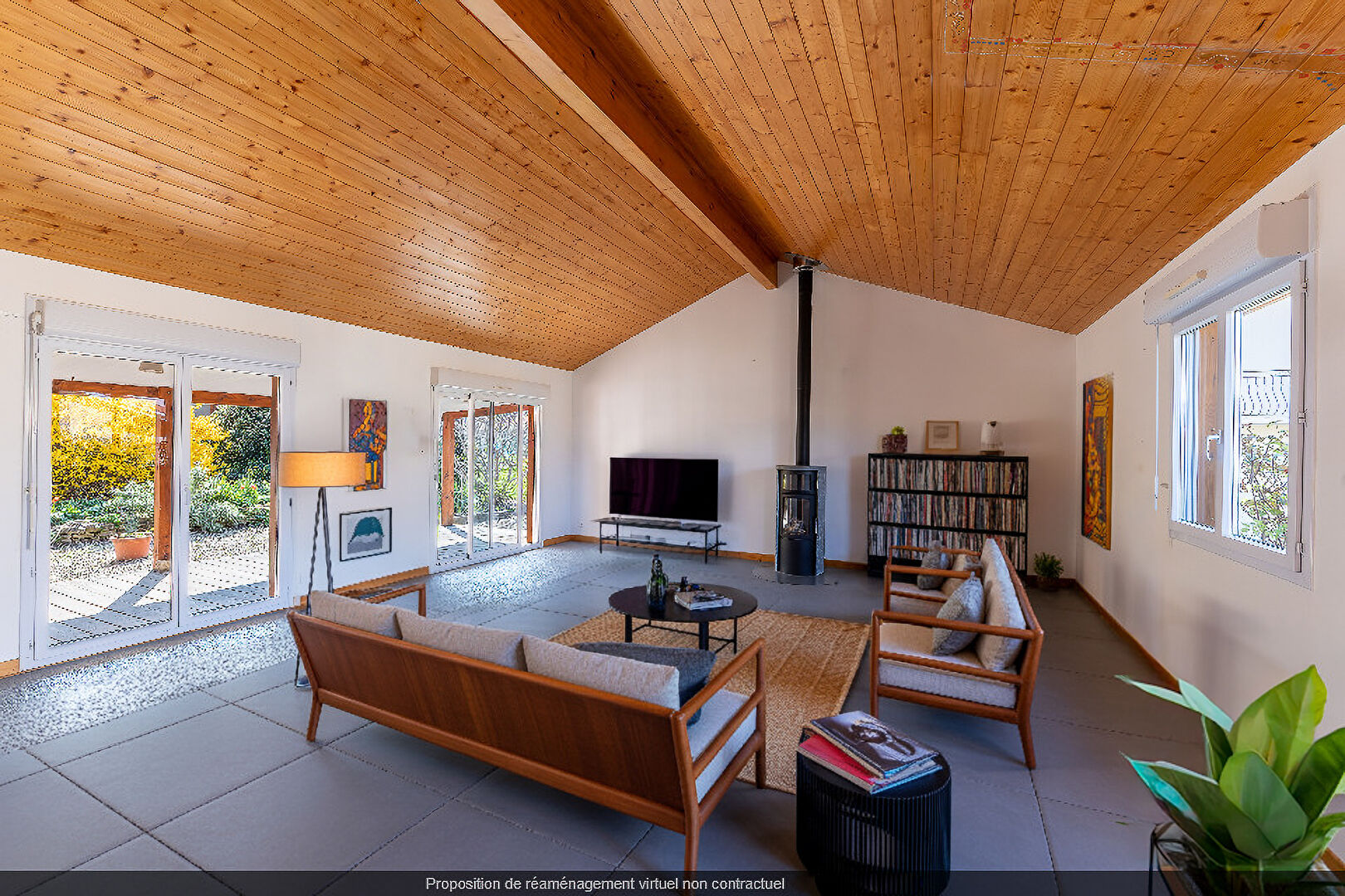 Les pièces de vie sont de plain pied et donnent sur la véranda et le jardin.