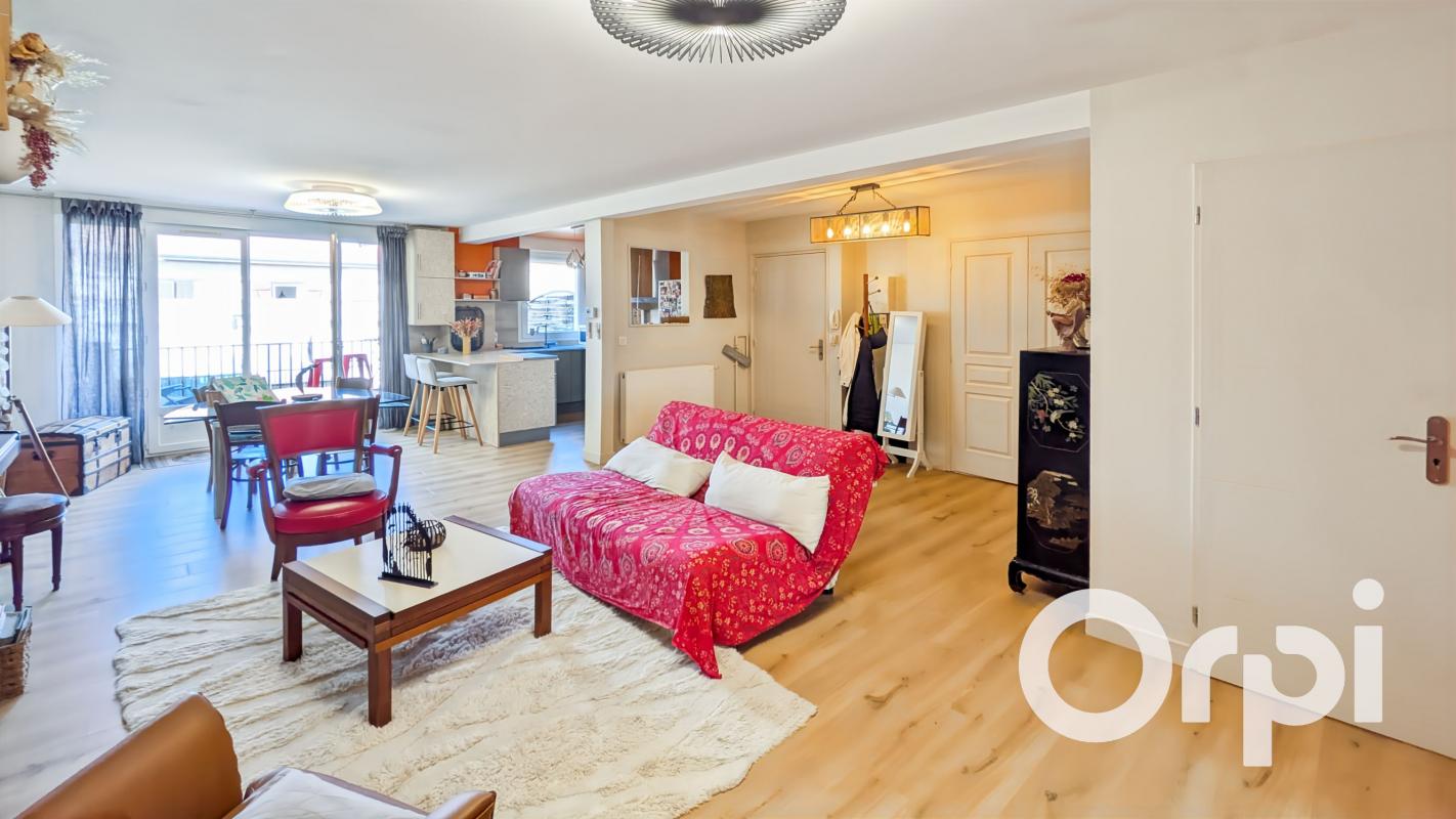 Cuisine neuve ouverte sur un vaste séjour lumineux sans vis-à-vis, 3 grandes chambres dont deux de 14 m², salle de bains avec baignoire et douche, WC indépendants.