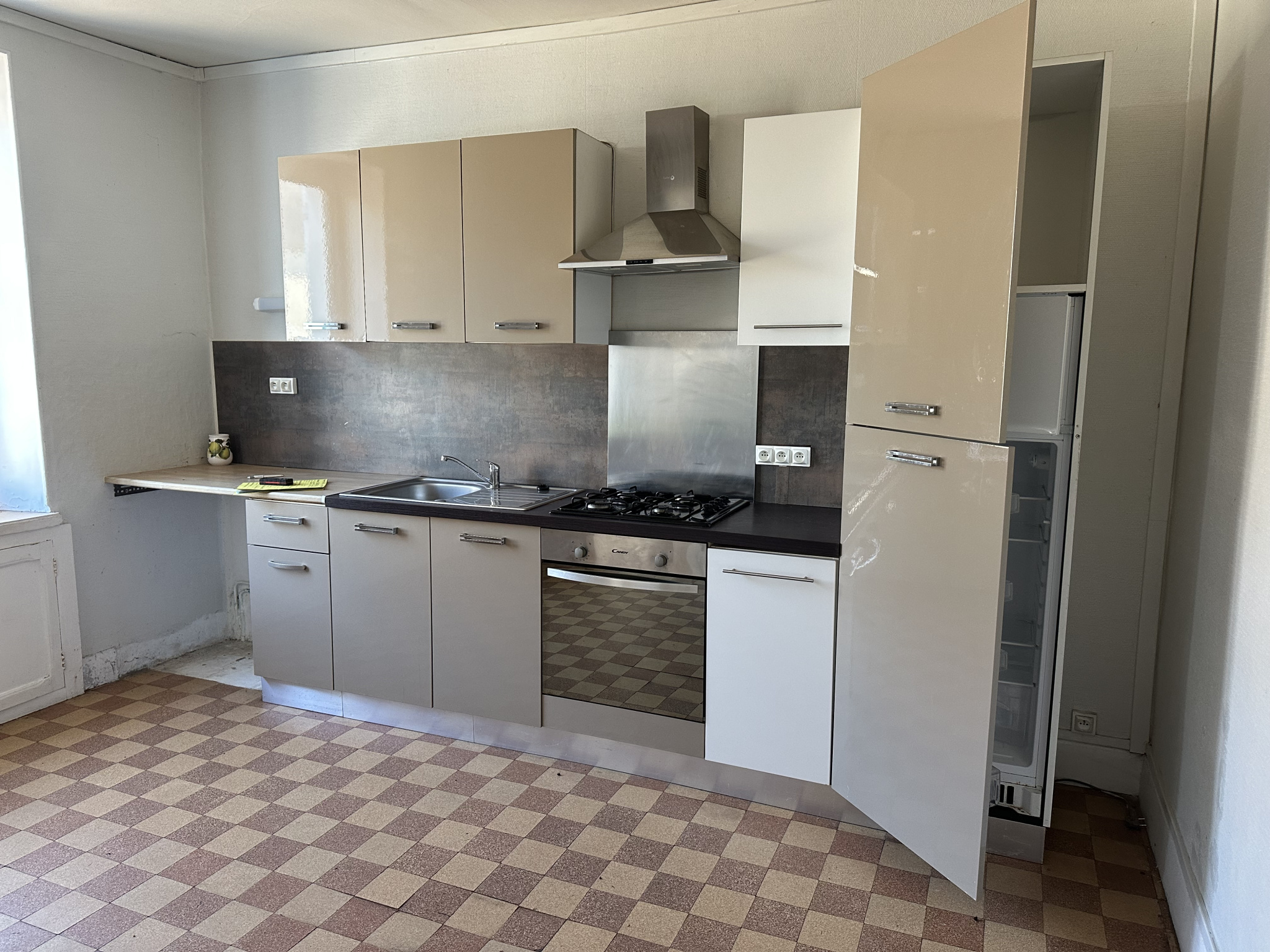 Cuisine aménagée ouverte sur une spacieuse pièce à vivre
