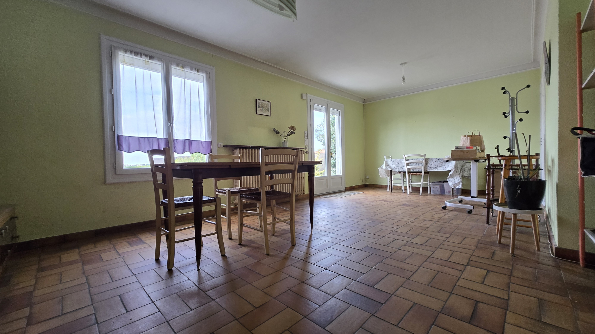 La pièce de vie, la cuisine, la chambre, la salle d'eau et wc indépendant, tout est de plain pied.